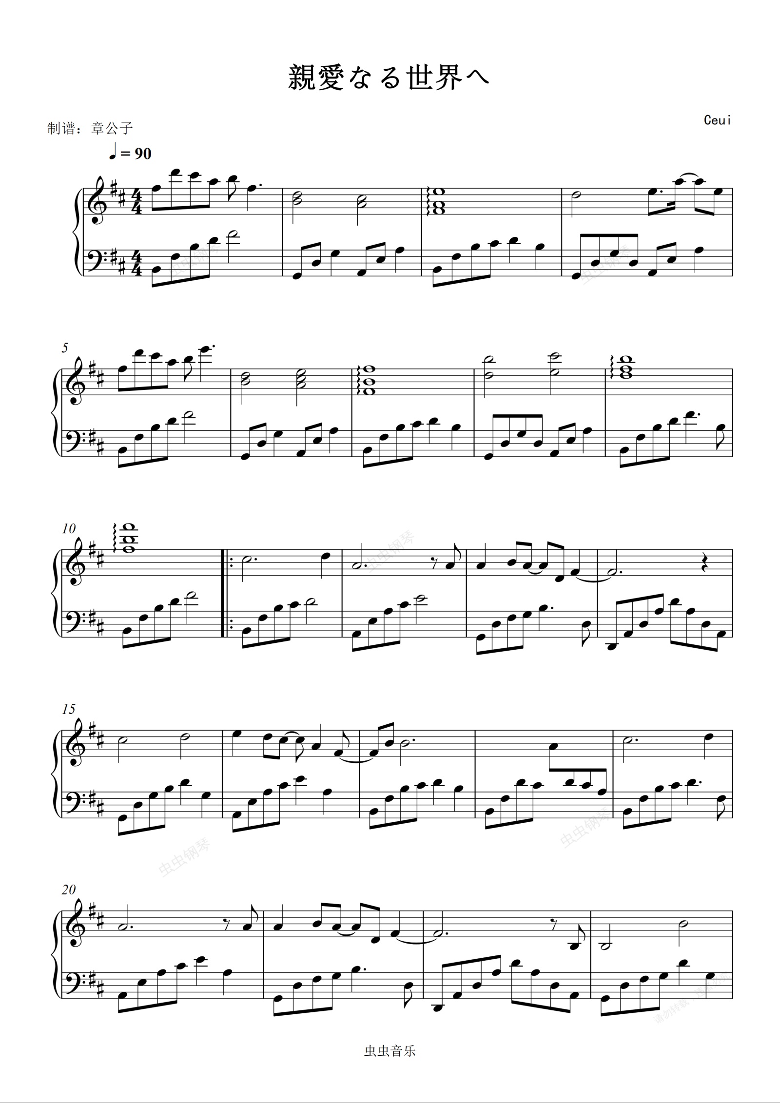 钢琴谱:親愛なる世界へ(献给亲爱的世界)- Ceui 独奏谱