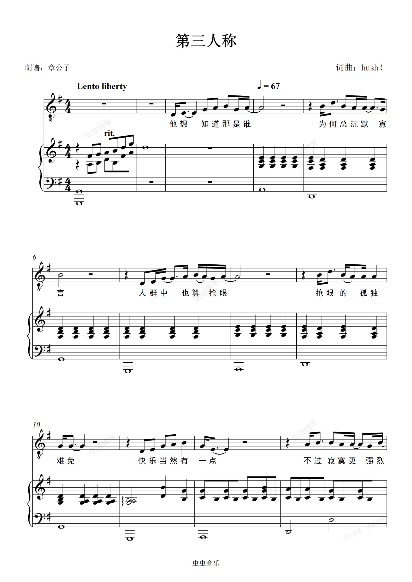 钢琴谱:《第三人称》- 达布希勒图 G调弹唱(伴奏)谱
