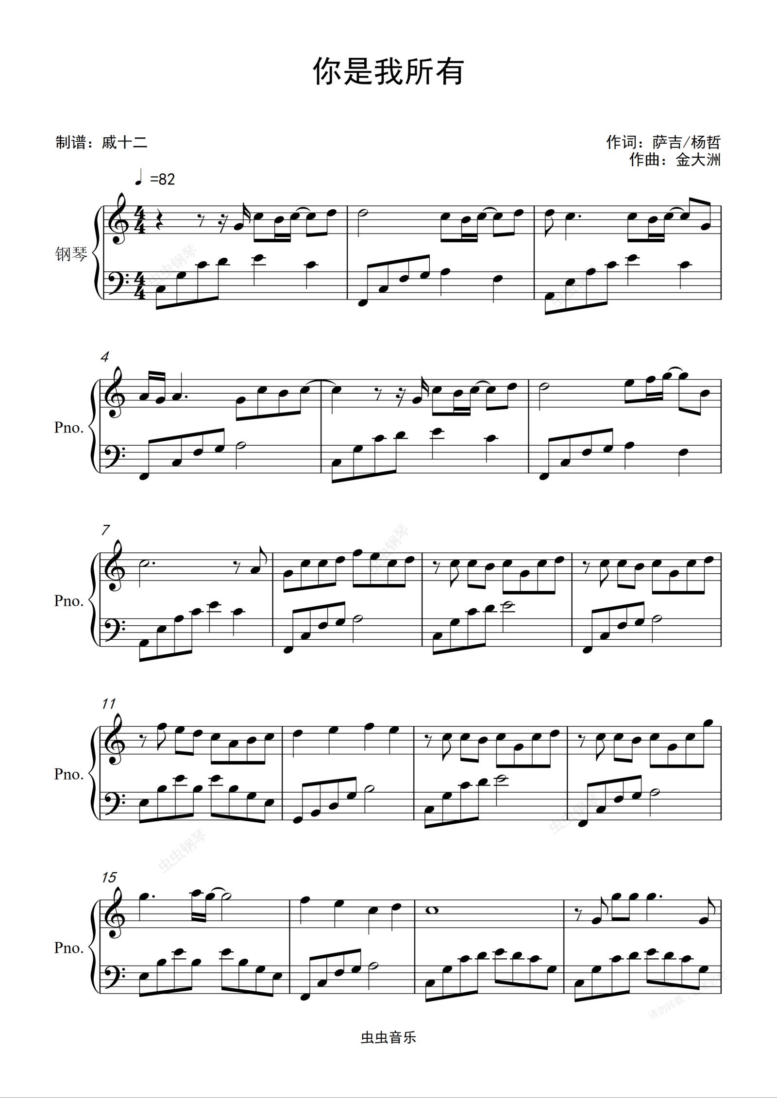 钢琴谱:你是我所有《良辰美景好时光》影视剧片尾主题曲-C调简单版