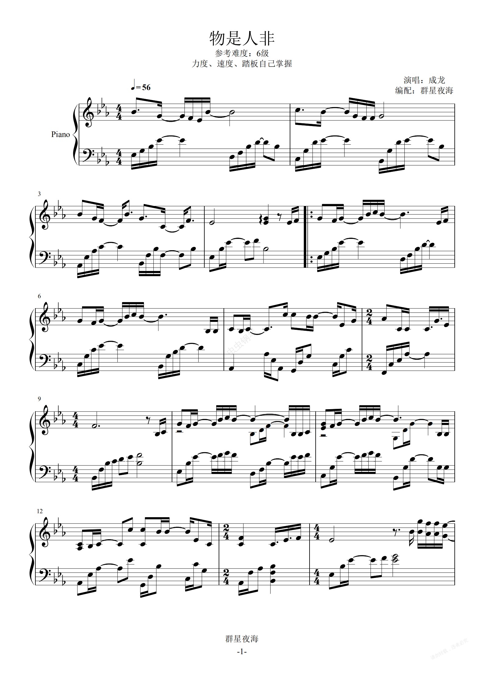 钢琴谱:物是人非 - 成龙 原调钢琴独奏