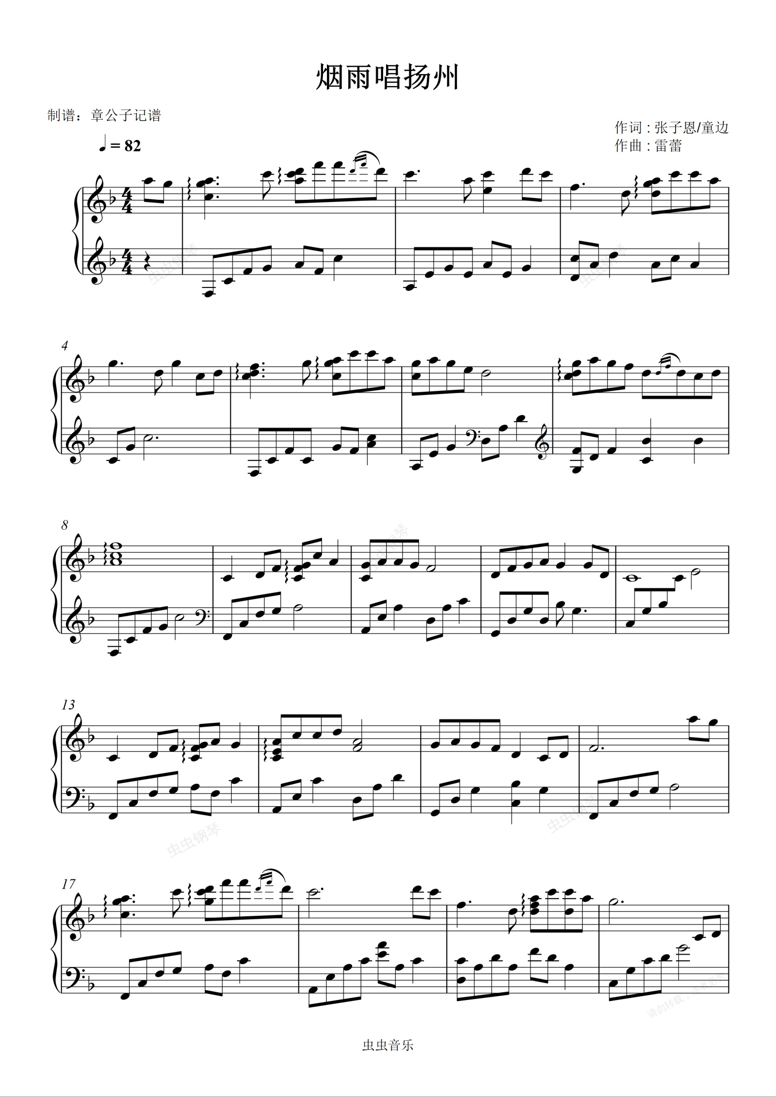 钢琴谱:《烟雨唱扬州》独奏谱 昼夜版 章公子扒谱