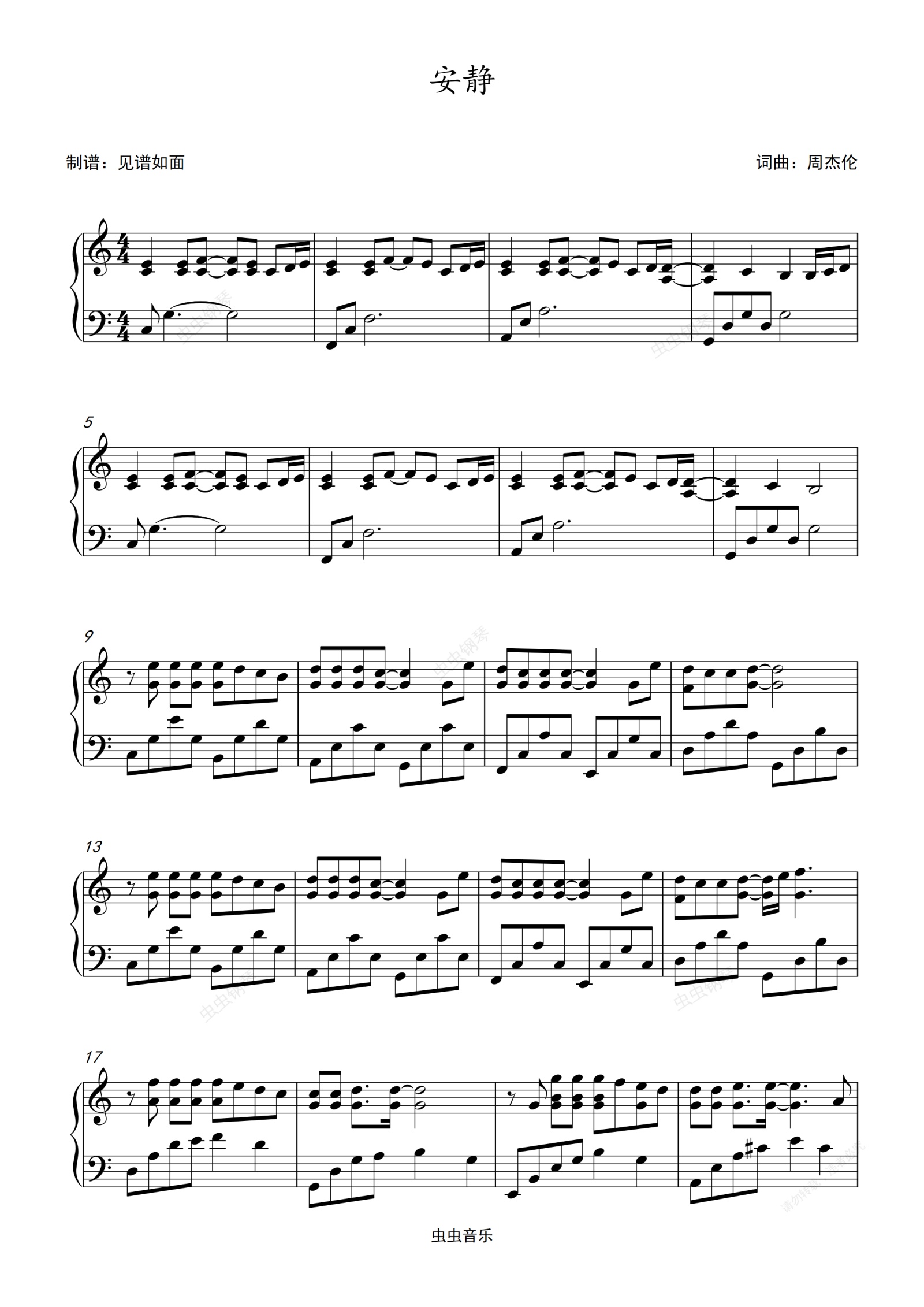 钢琴谱:周杰伦 - 安静【C调进阶】