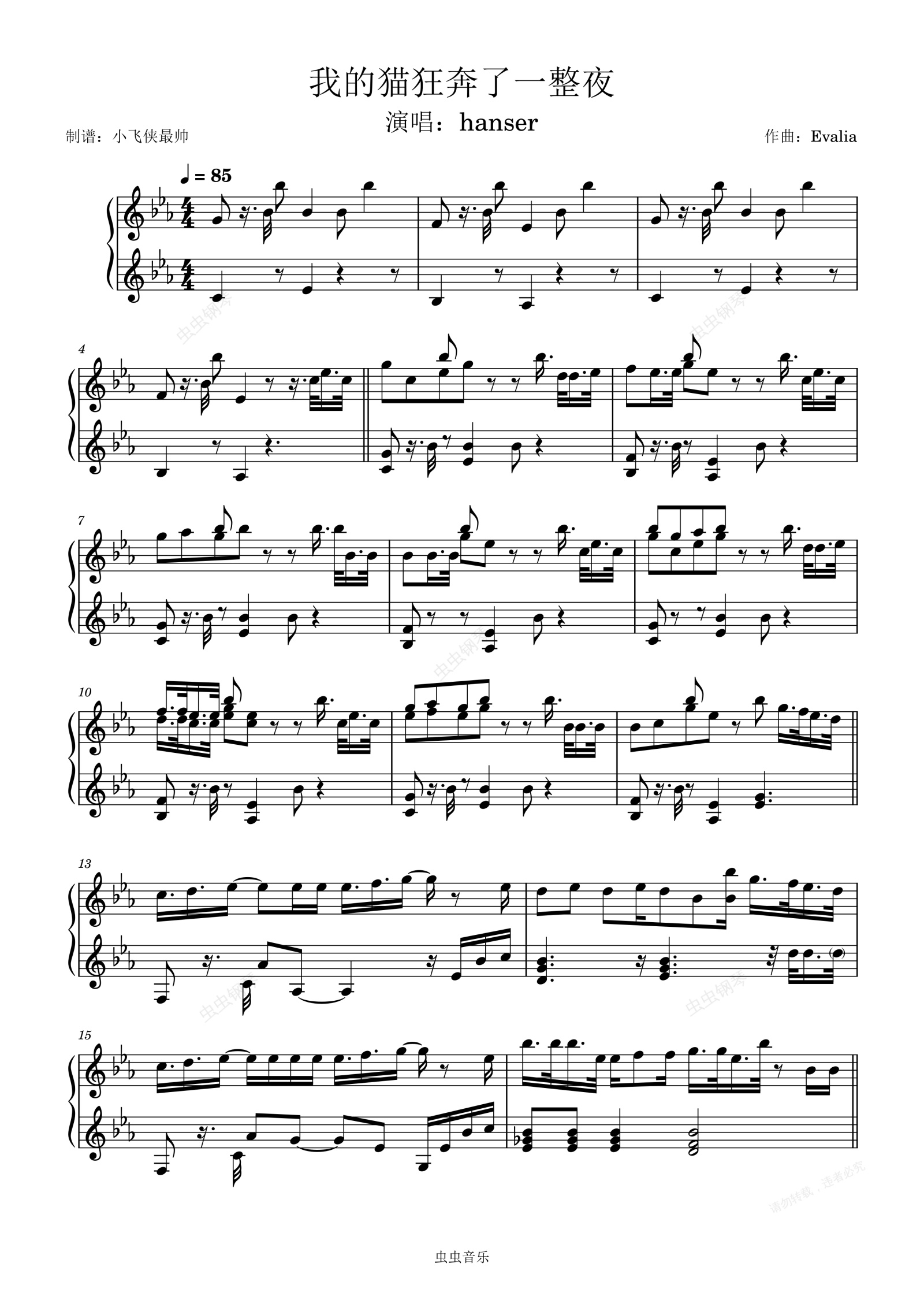 钢琴谱:我的猫狂奔了一整夜(hanser版)