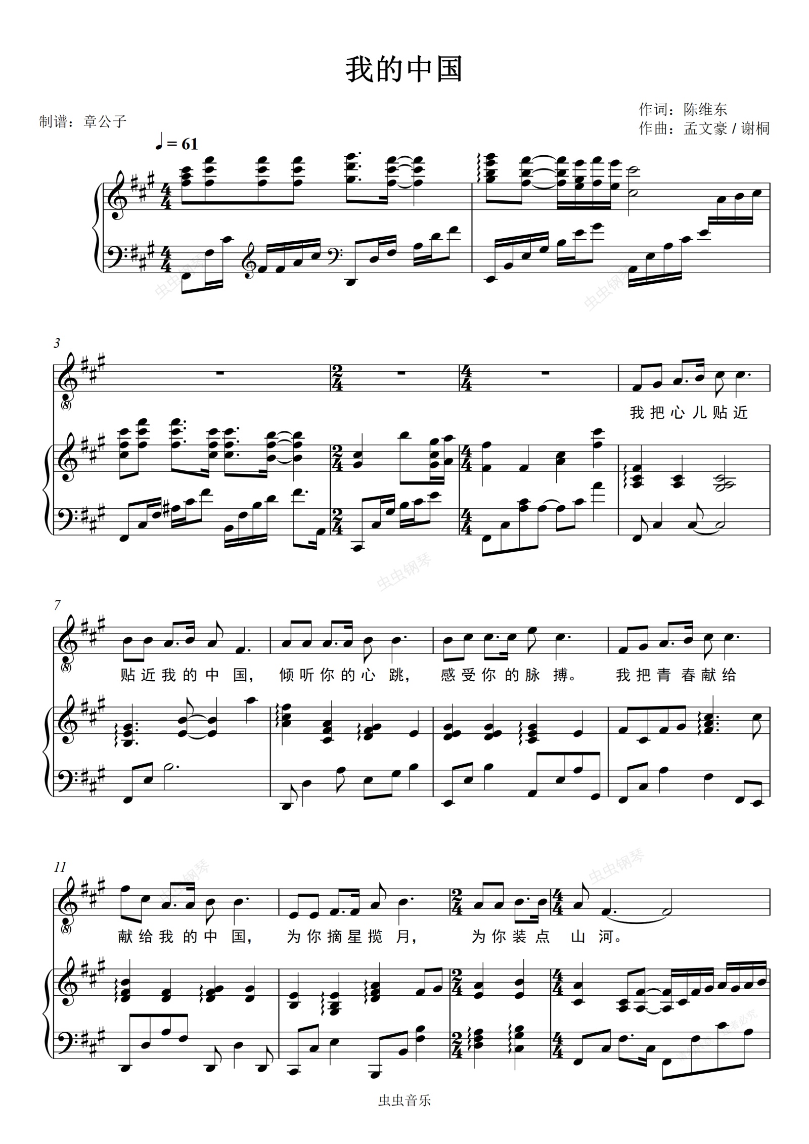 钢琴谱:《我的中国》- 石倚洁 弹唱(伴奏)谱