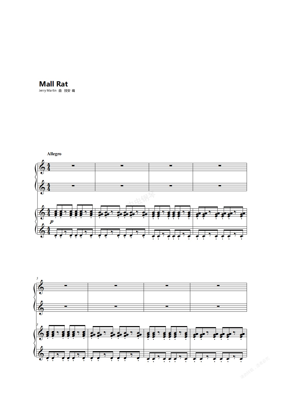 钢琴谱:《模拟人生1 The Sims1》最经典曲目《Mall Rat》四手联弹钢琴谱