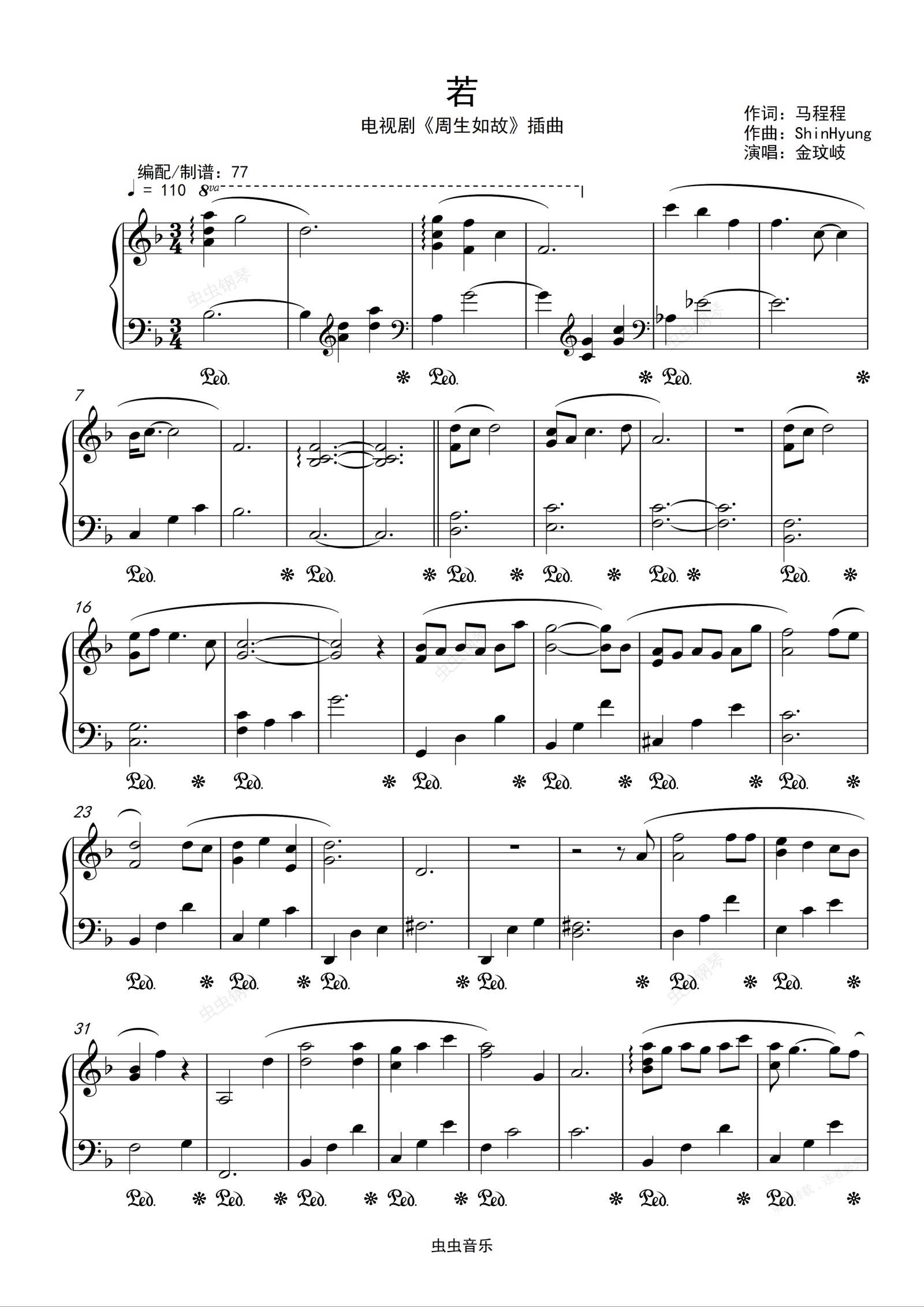 钢琴谱:金玟岐-《若》电视剧{周生如故}插曲 钢琴独奏谱