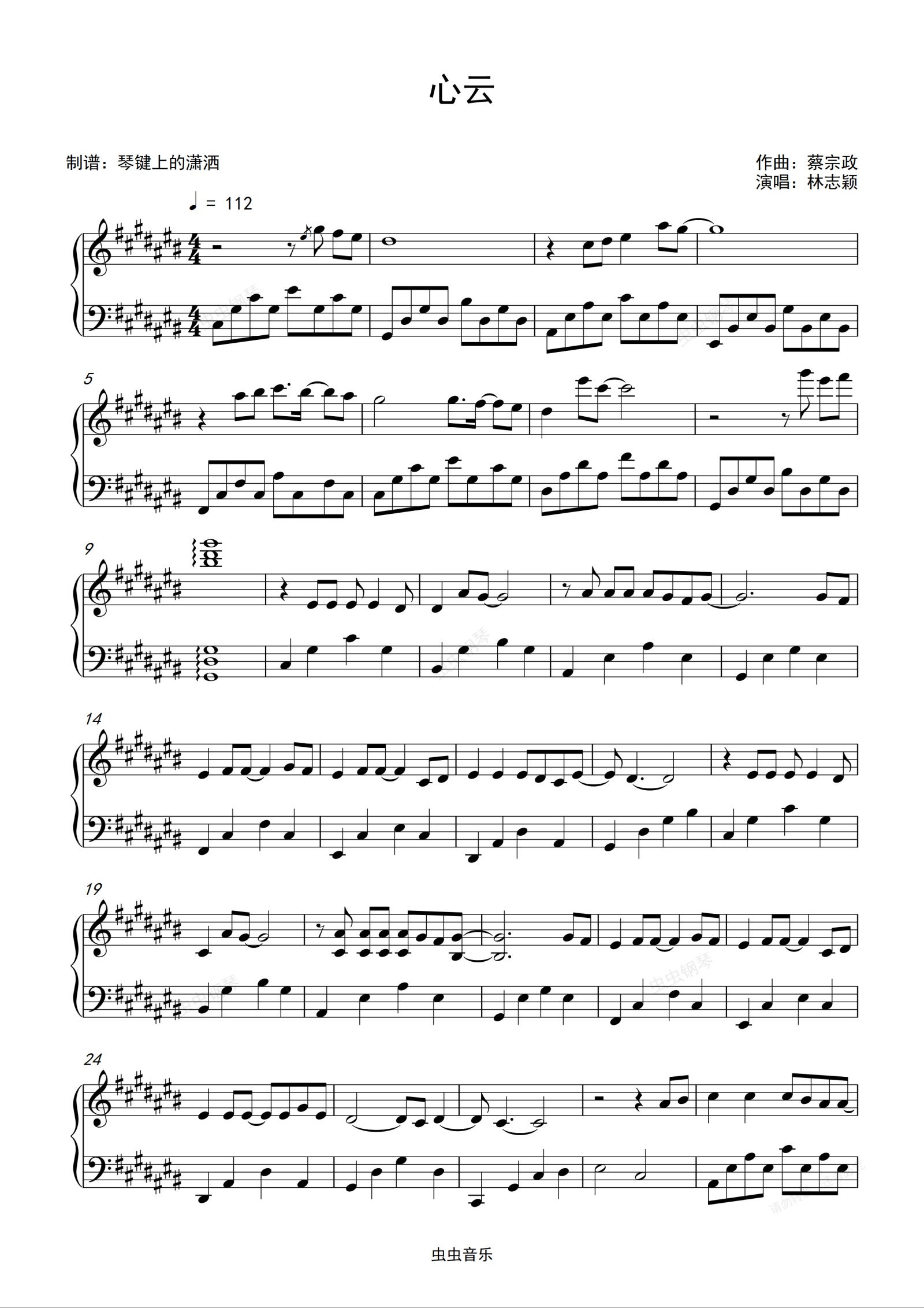钢琴谱:《心云》-林志颖-完美升C调独奏