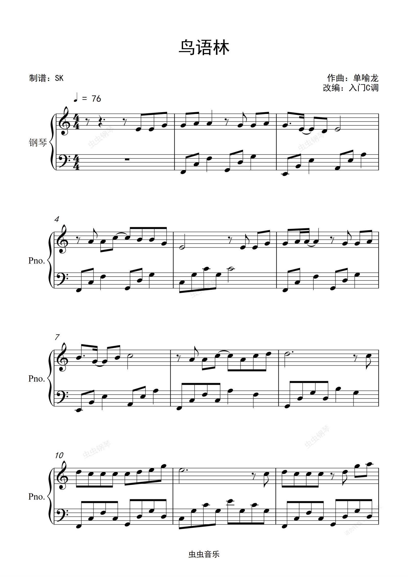 钢琴谱:双笙《鸟语林》电视剧《宸汐缘》插曲C调简单版