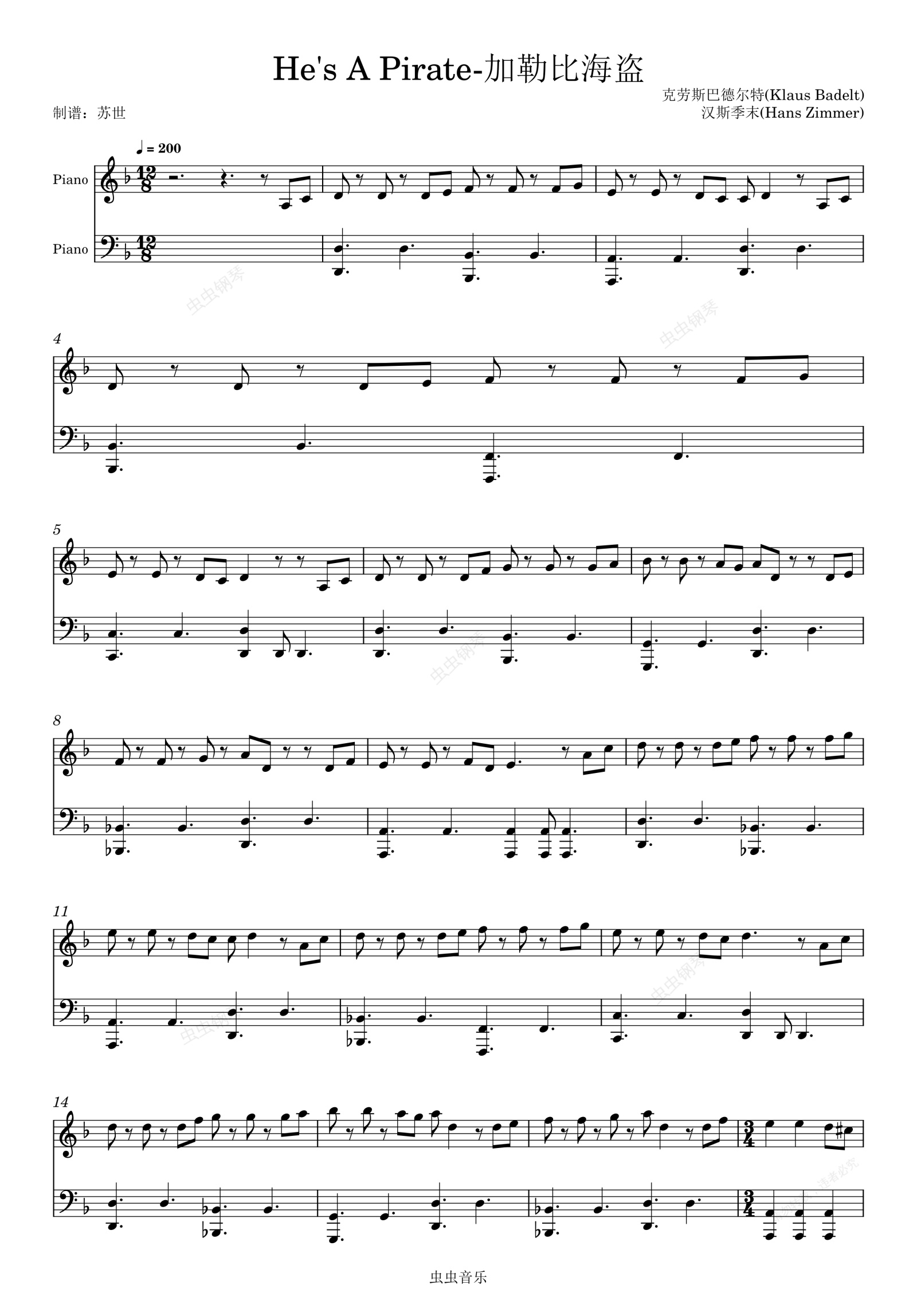 钢琴谱:《加勒比海盗》He's a pirate进阶版