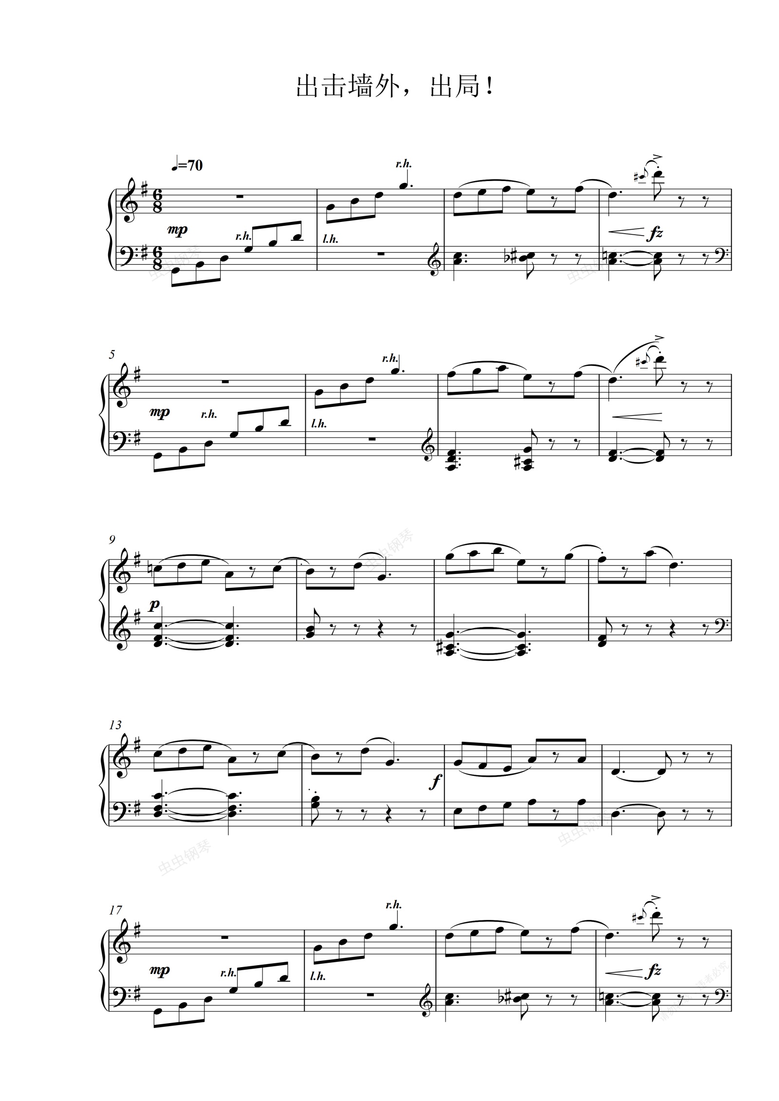 钢琴谱:7.击出墙外,出局