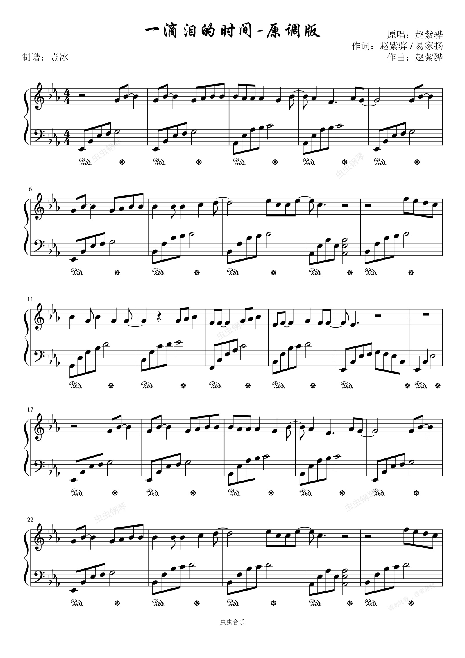 钢琴谱:一滴泪的时间//赵紫骅-原调版