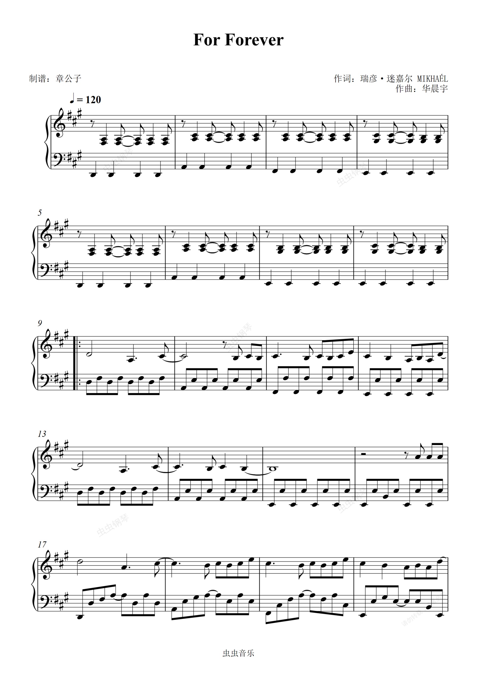 钢琴谱:《For Forever》- 华晨宇 独奏谱