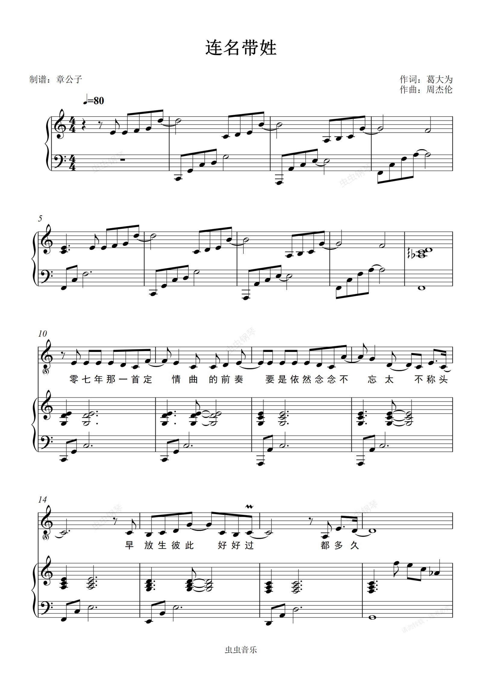 钢琴谱:《连名带姓》- 张惠妹 C调(男声版)弹唱(伴奏)谱