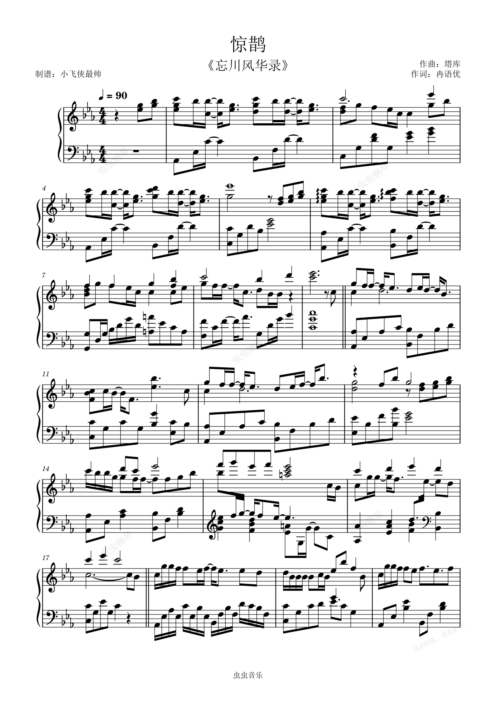 钢琴谱:惊鹊《忘川风华录》(星尘/海伊)