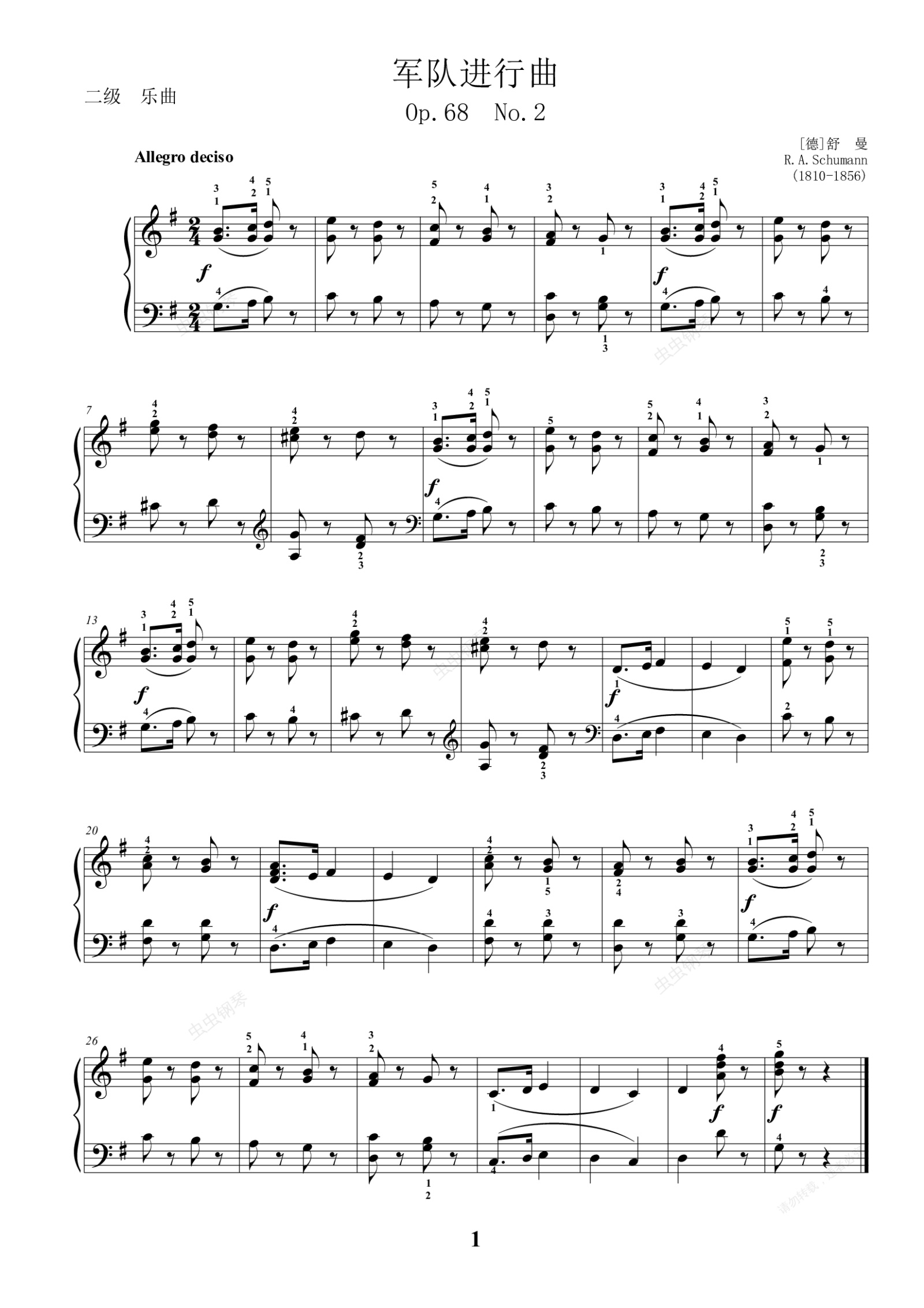 钢琴谱: 乐曲 军队进行曲