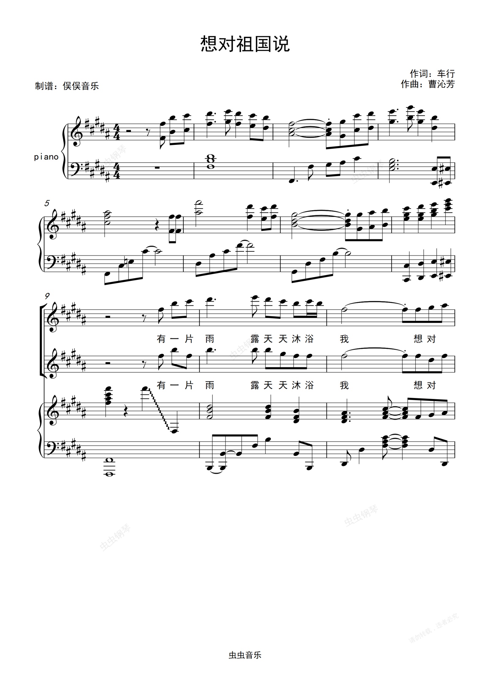 钢琴谱:迎国庆红歌 - 想对祖国说(合唱伴奏谱)