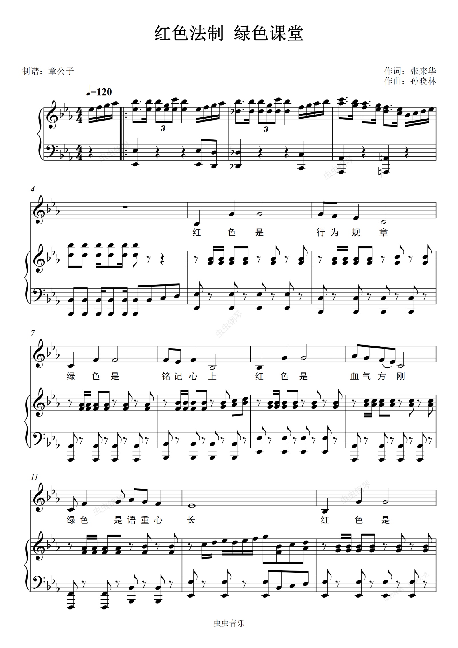 钢琴谱:《红色法制 绿色课堂》 弹唱(伴奏)谱