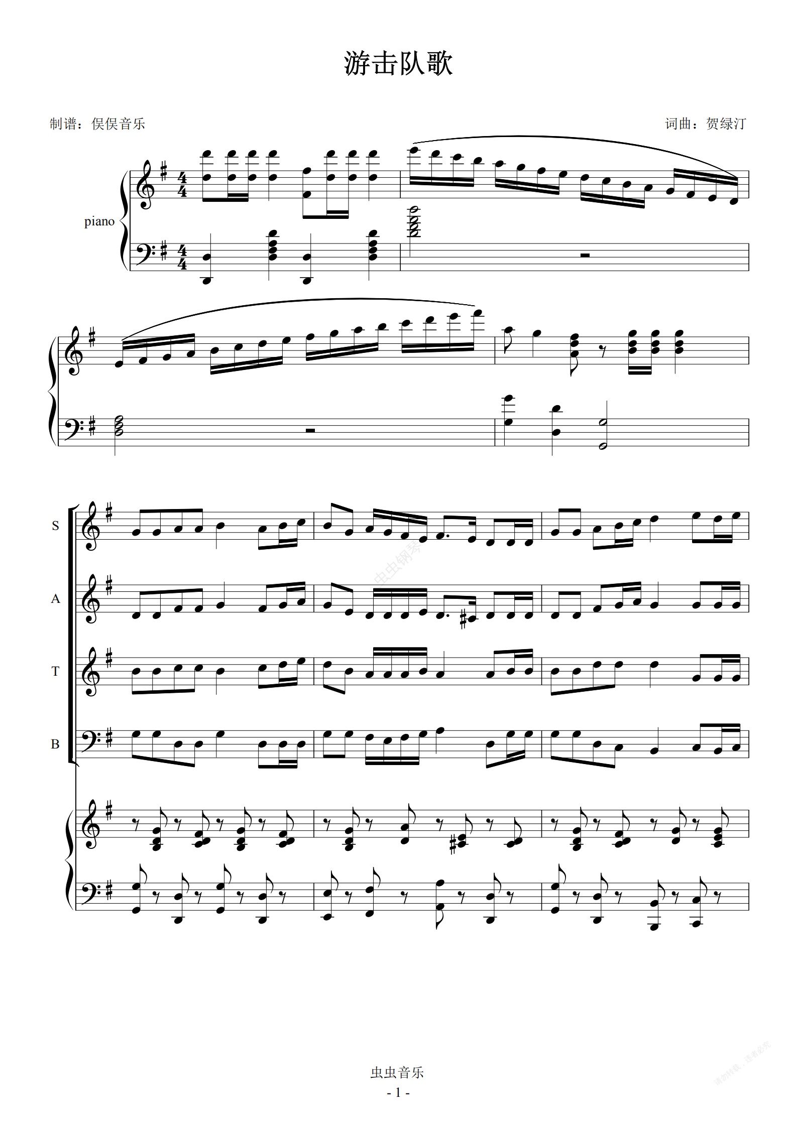 钢琴谱:迎国庆红歌 - 游击队歌(合唱伴奏谱)