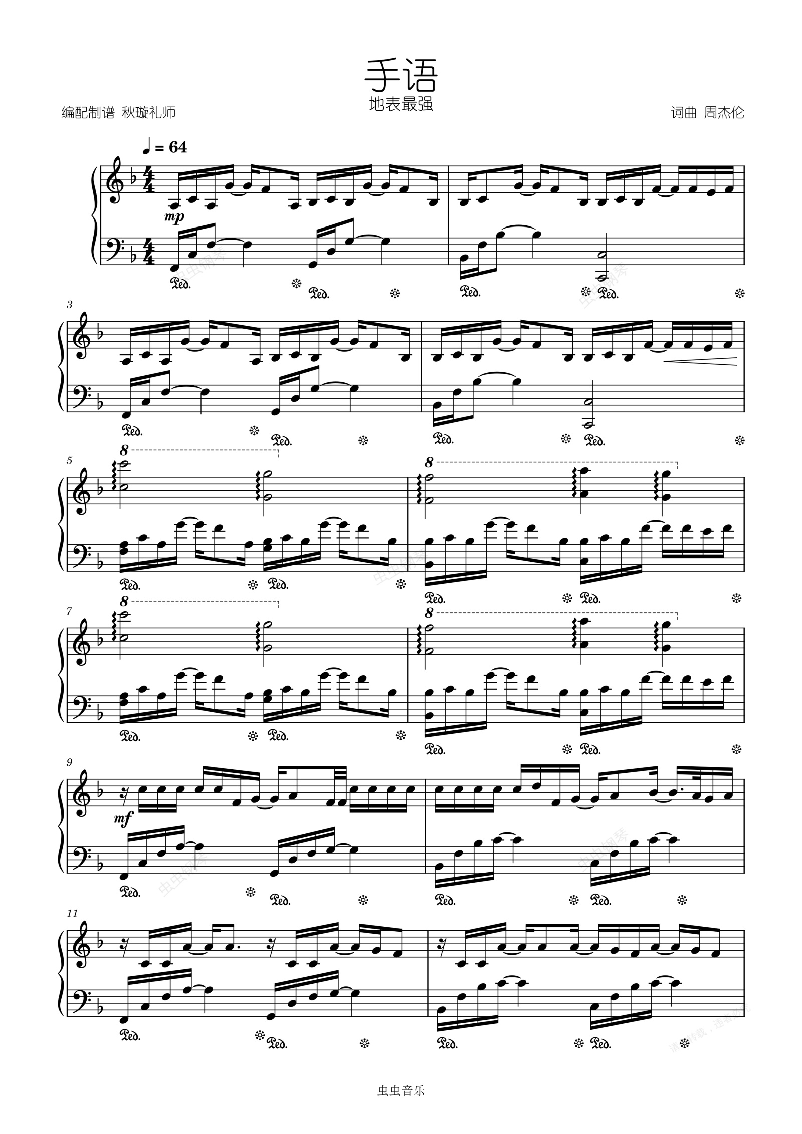 钢琴谱:手语—周杰伦[杰迷演奏级]
