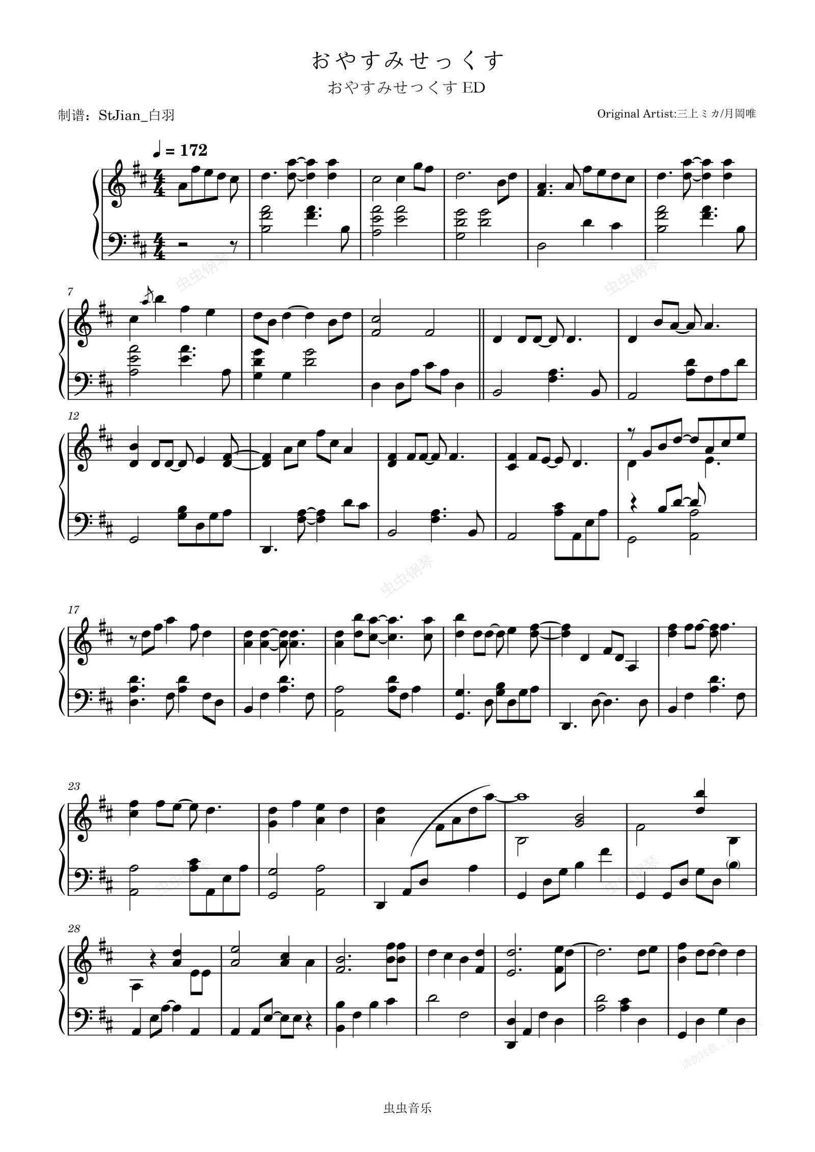 钢琴谱:装睡的妹妹ED - 「おやすみせっくす」