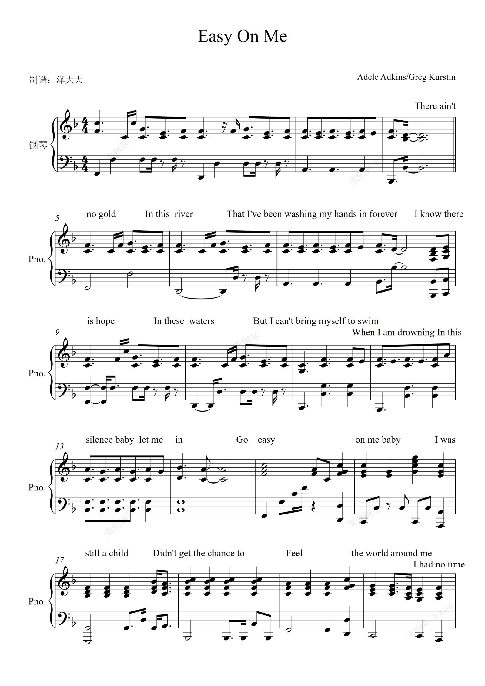 钢琴谱:Easy On Me【原版完美弹唱附词】泽大大 Adele