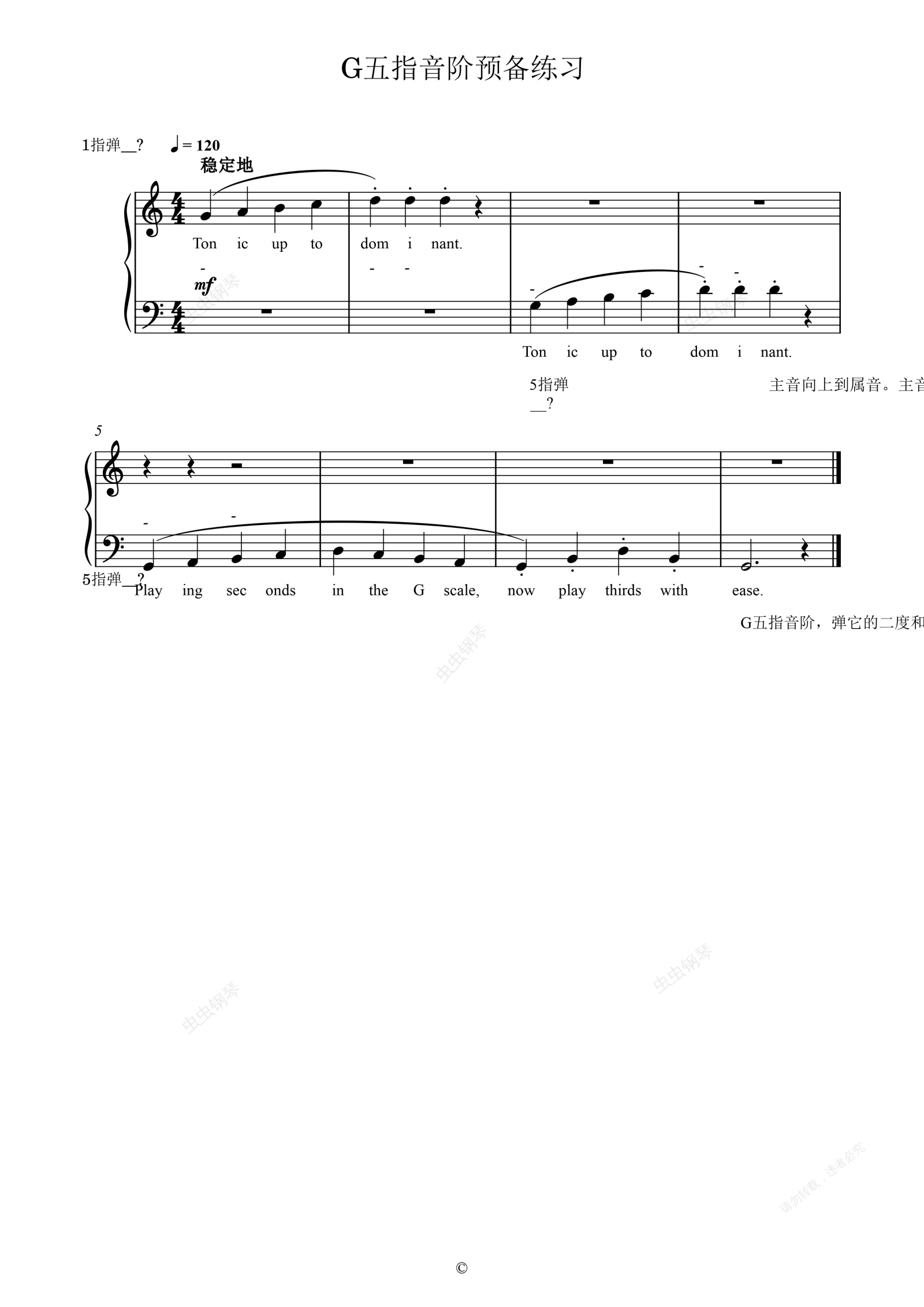 钢琴谱:单元十 G五指音阶预备练习
