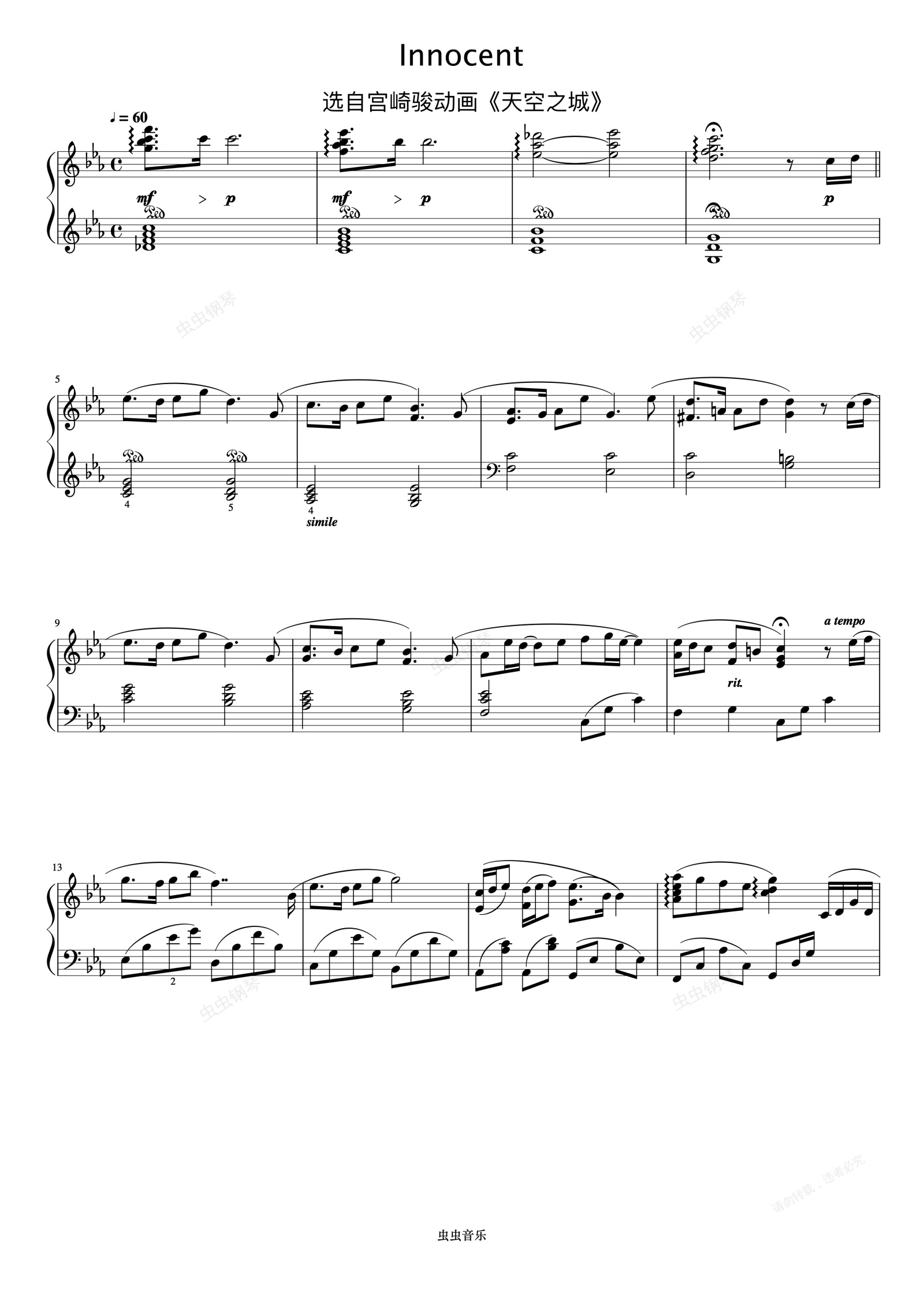 钢琴谱:Innocent《久石让钢琴作品精选集》