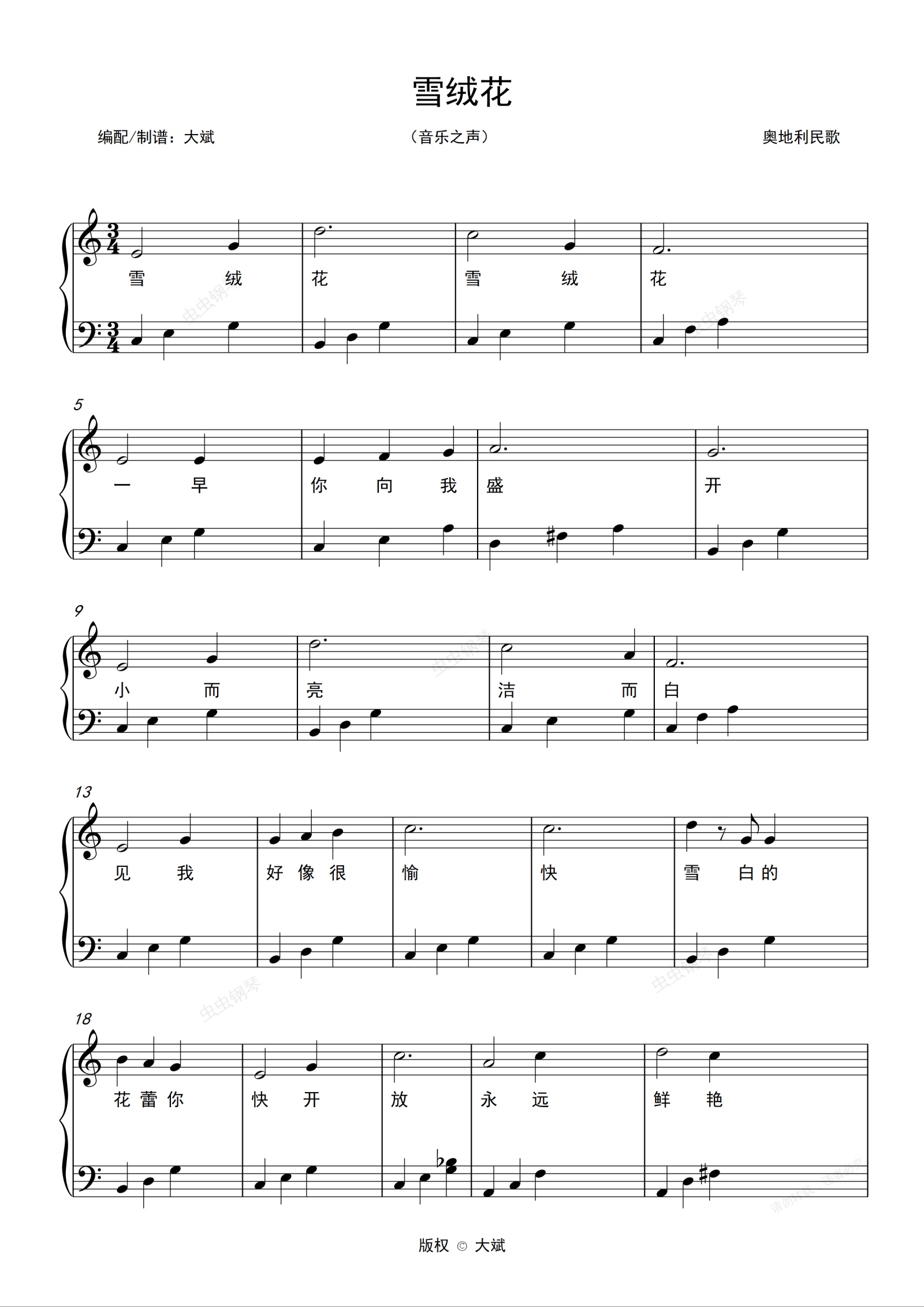 钢琴谱:雪绒花-音乐之声