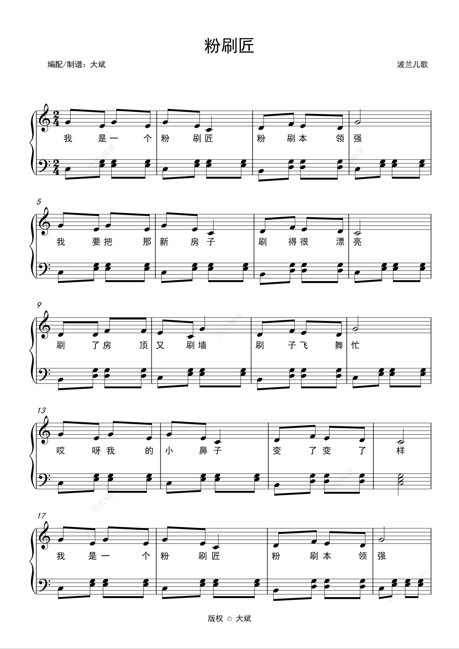 钢琴谱:粉刷匠-儿歌