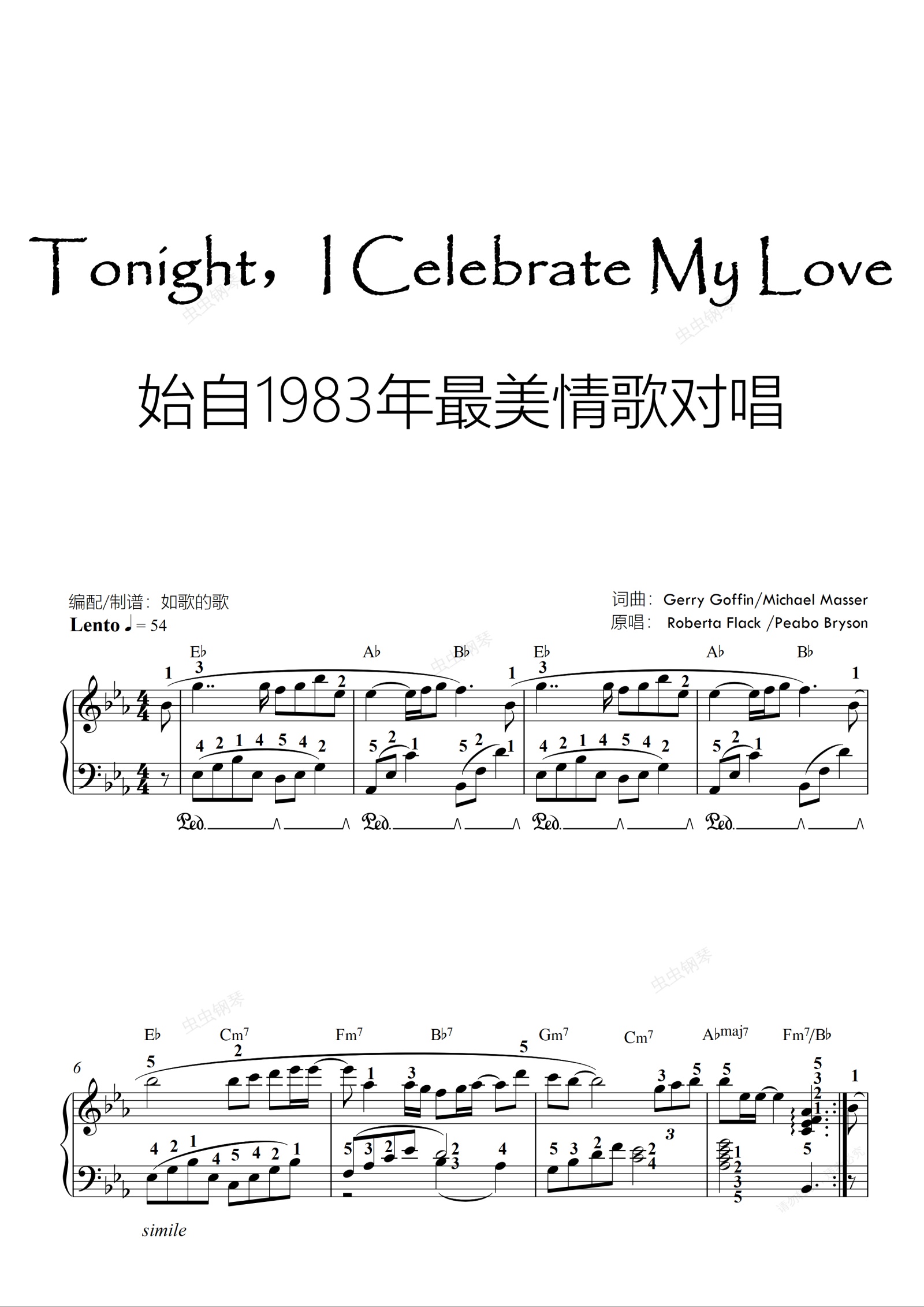 钢琴谱:Tonight I celebrate my love最经典情歌对唱带指法&功能
