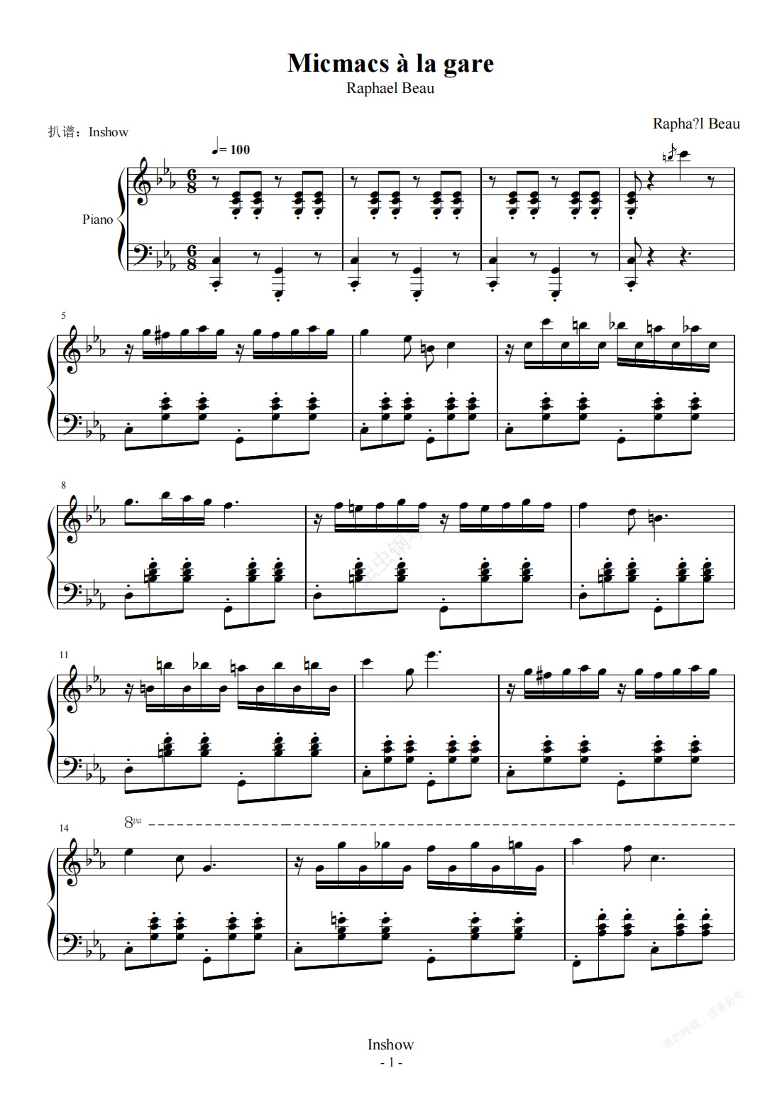 钢琴谱:Micmacs a la gare【独奏】- Raphaël Beau - #BGM #抖音