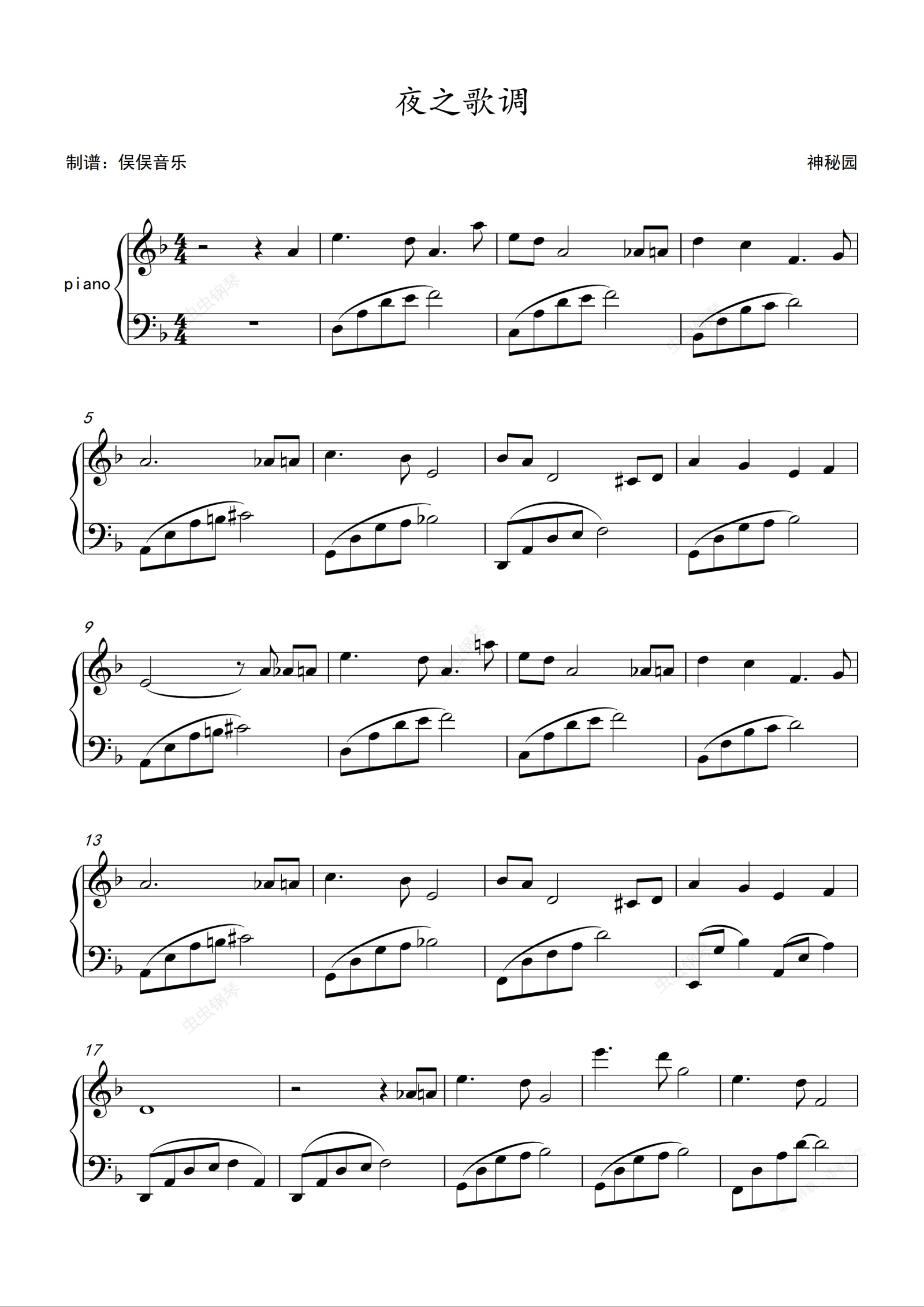 钢琴谱:神秘园 - 夜之歌调/Cantoluna(简易版)