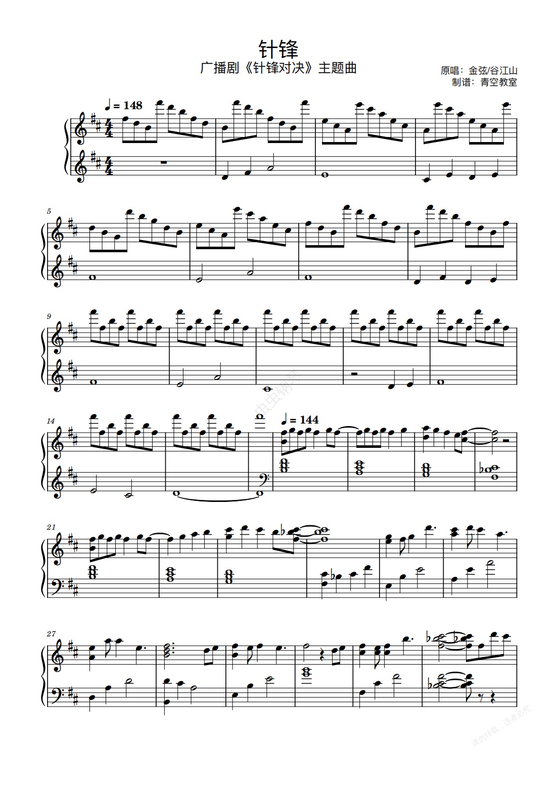 钢琴谱:针锋——广播剧《针锋对决》第一季主题曲