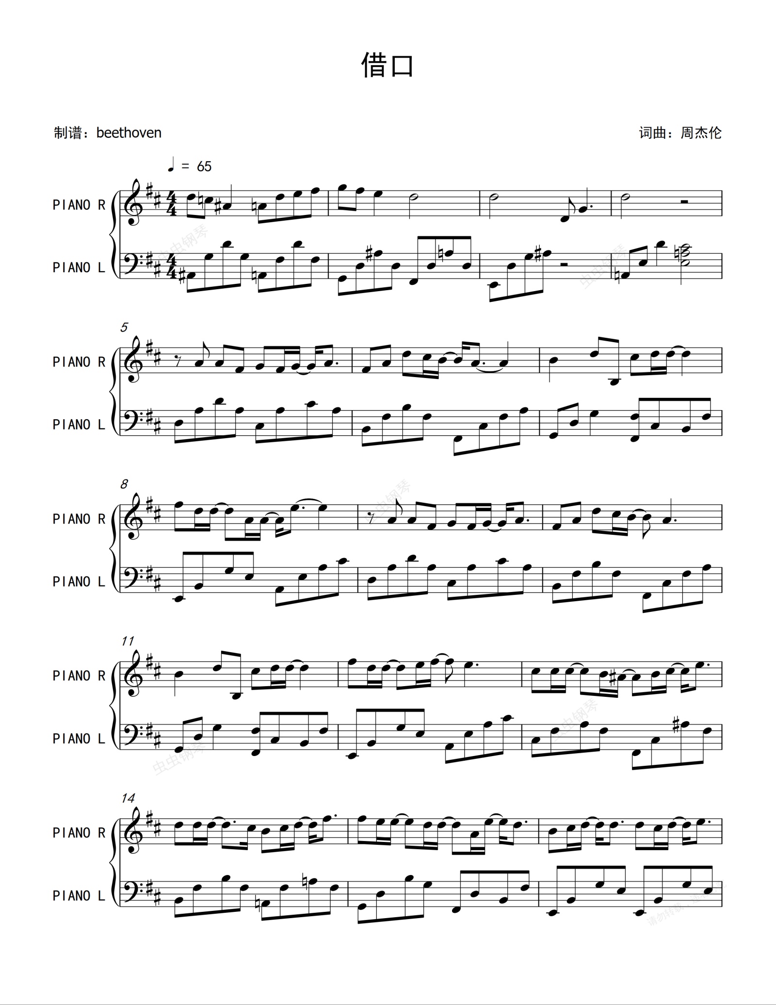 钢琴谱:借口-周杰伦钢琴原版