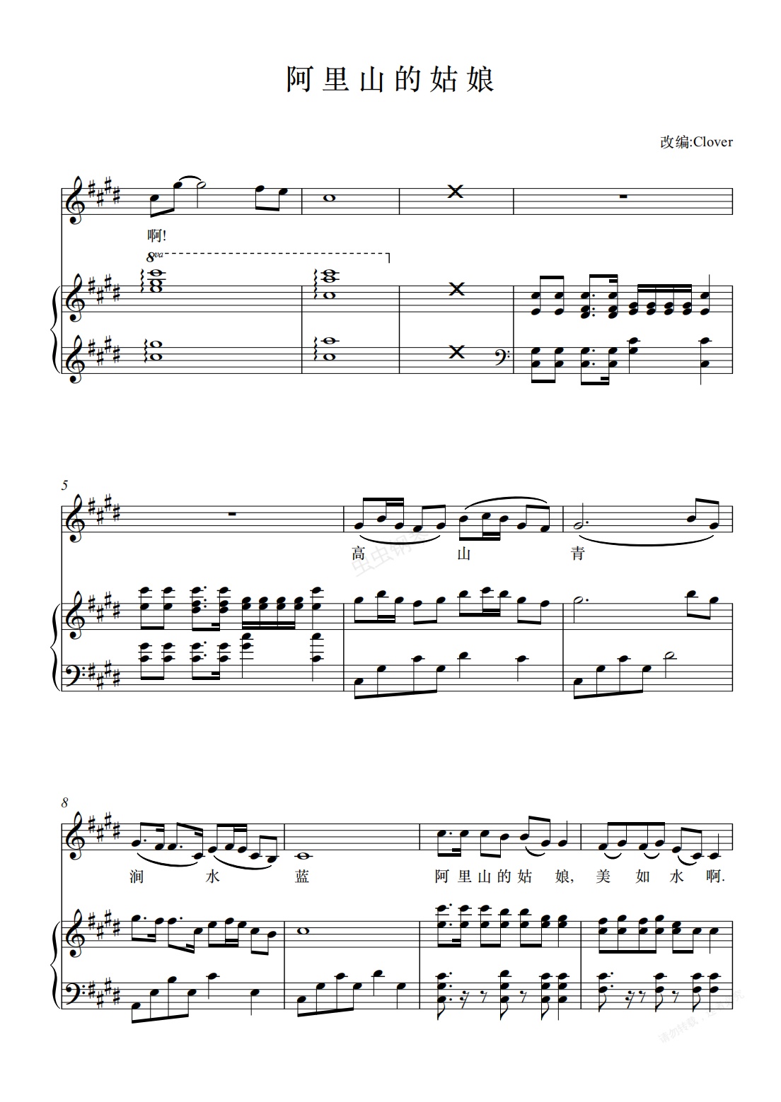 钢琴谱:阿里山的姑娘钢琴弹唱「E大调」