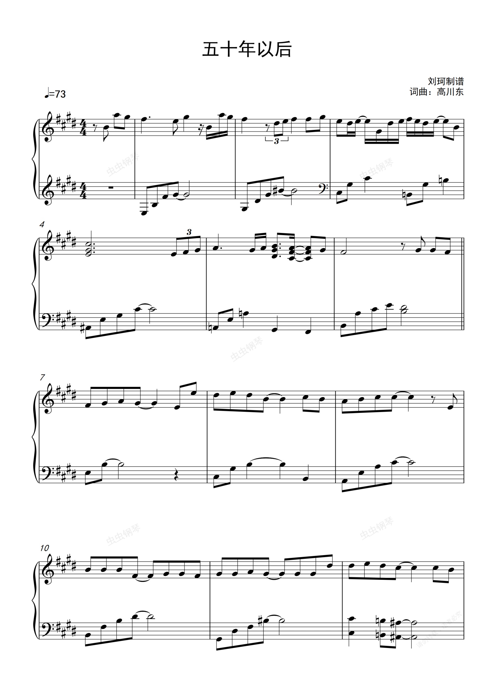 钢琴谱:五十年以后 - 小阿七 完整独奏版