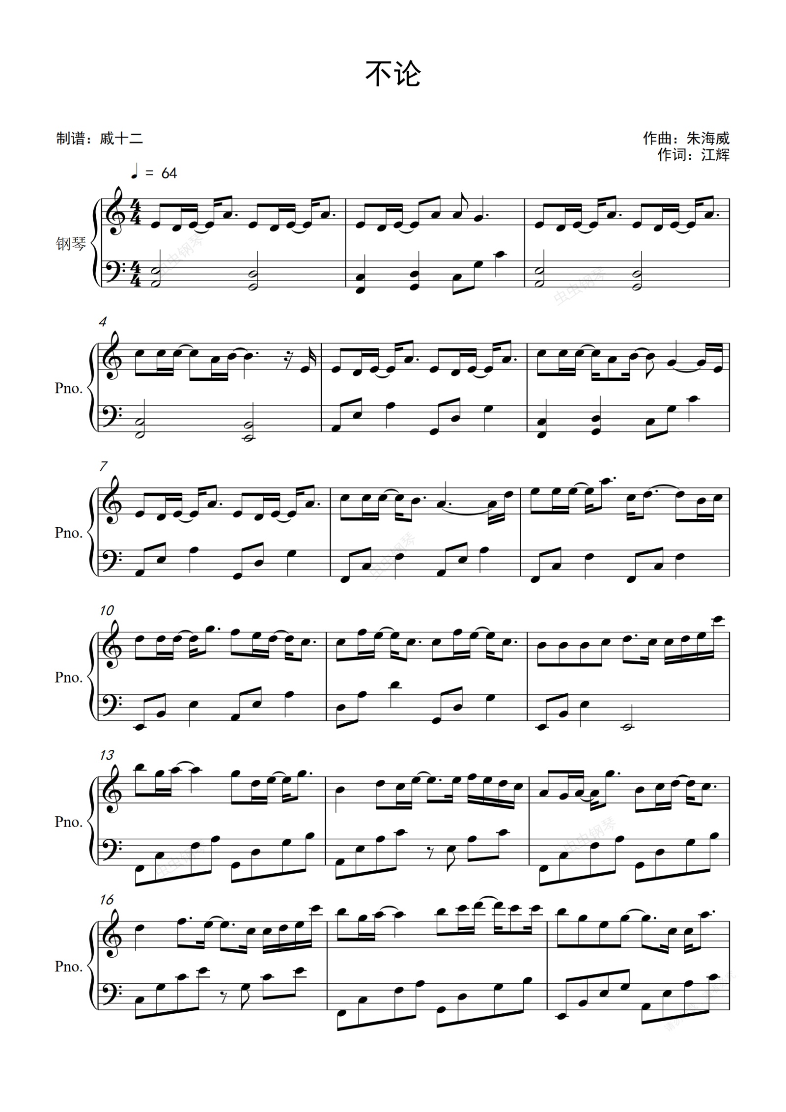 钢琴谱:不论《周生如故》人物推广曲-C调简单版