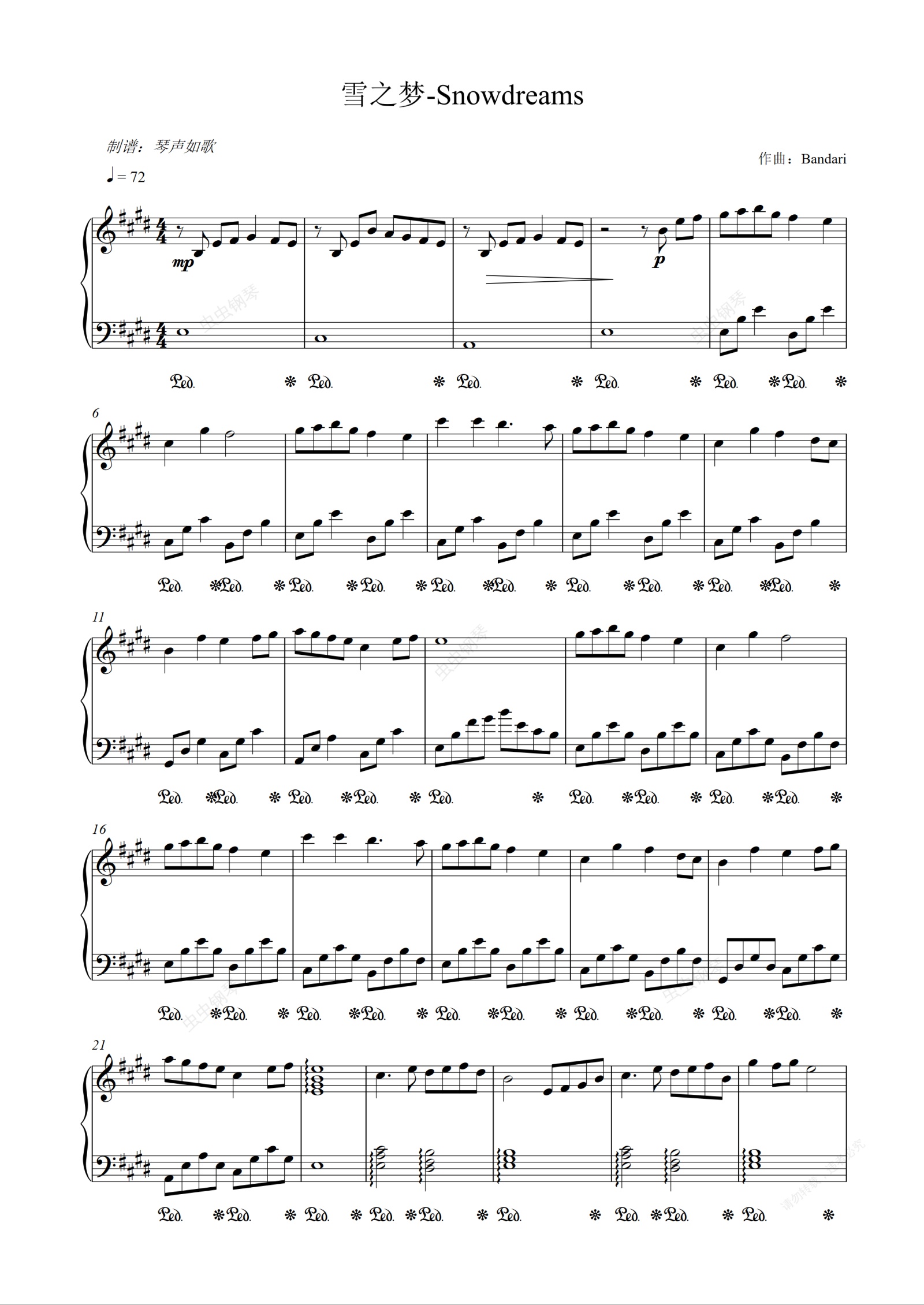钢琴谱:雪之梦-Snowdreams 【童年味道纯音乐】