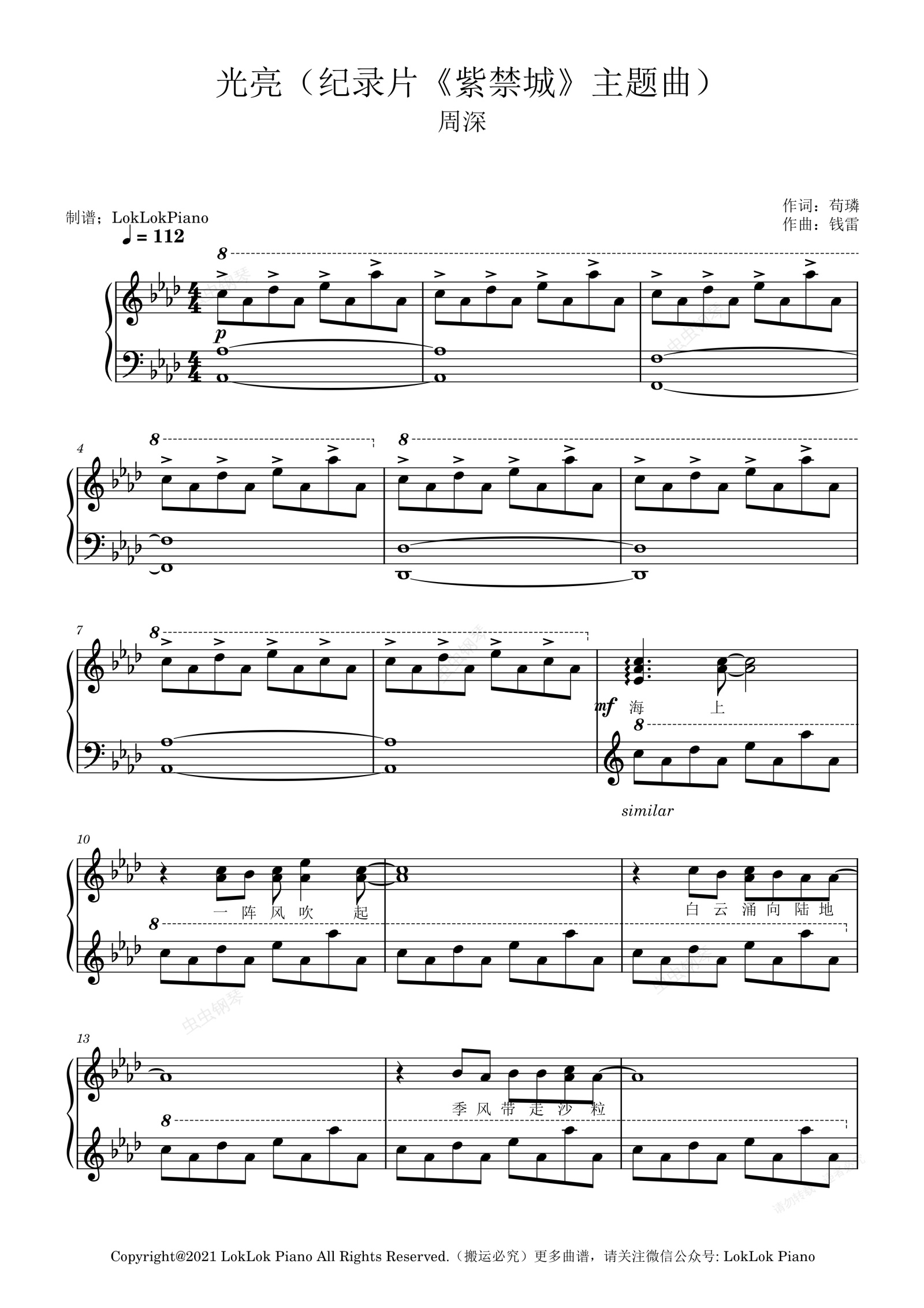 钢琴谱:光亮 | LokLok Piano钢琴演奏版