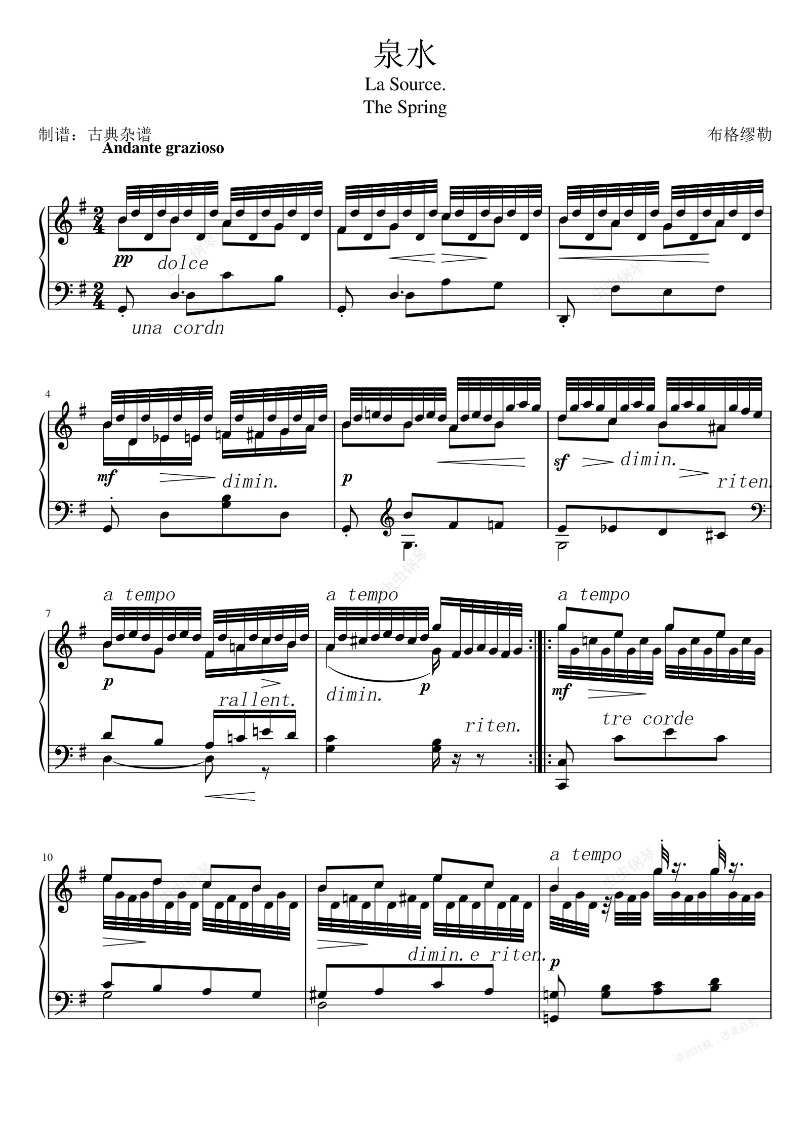 钢琴谱:泉水 Op.109,布格缪勒18首钢琴练习曲