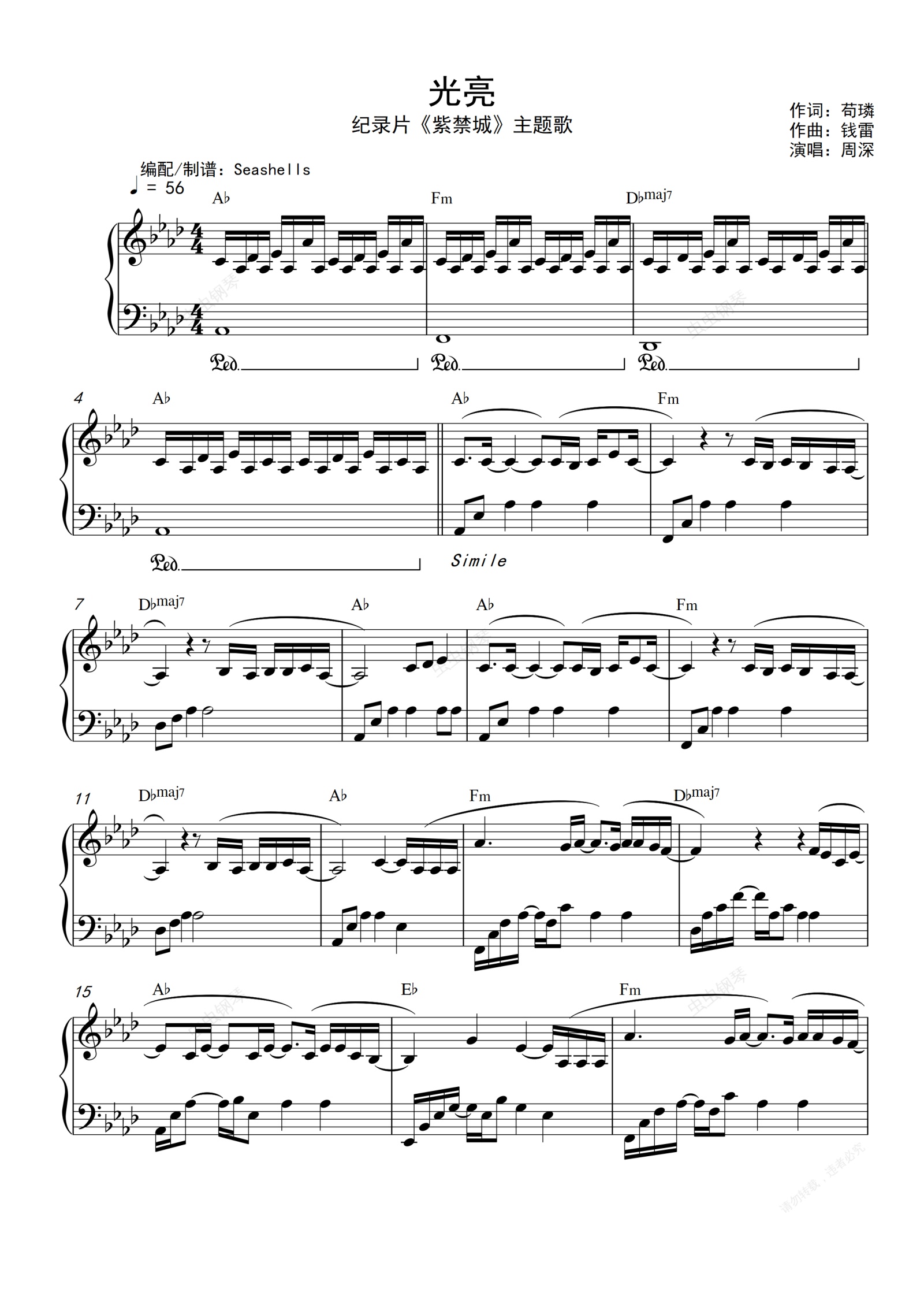 钢琴谱:周深-《光亮》精编钢琴独奏 记录片{紫禁城}主题歌