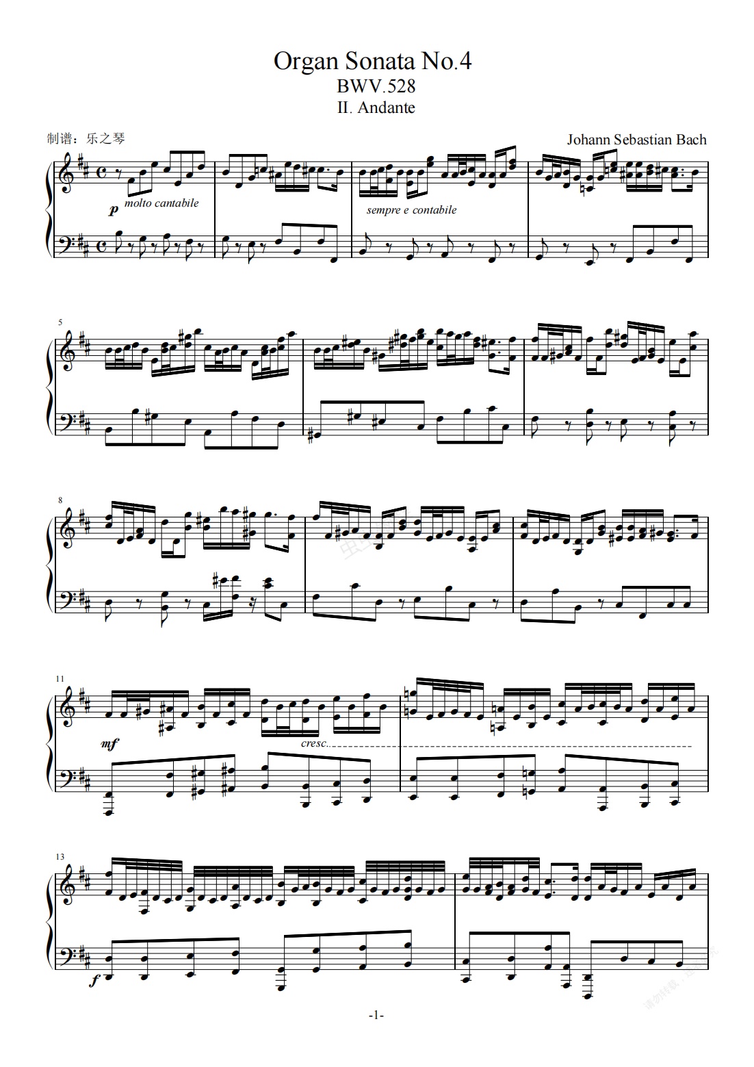 钢琴谱:第四号管风琴奏鸣曲BMV.528