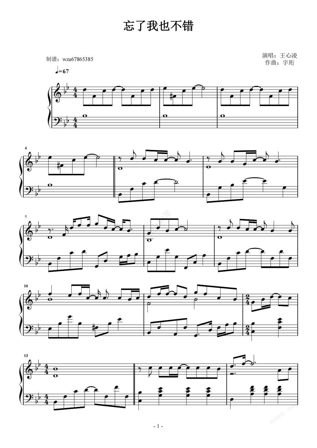 钢琴谱:忘了我也不错
