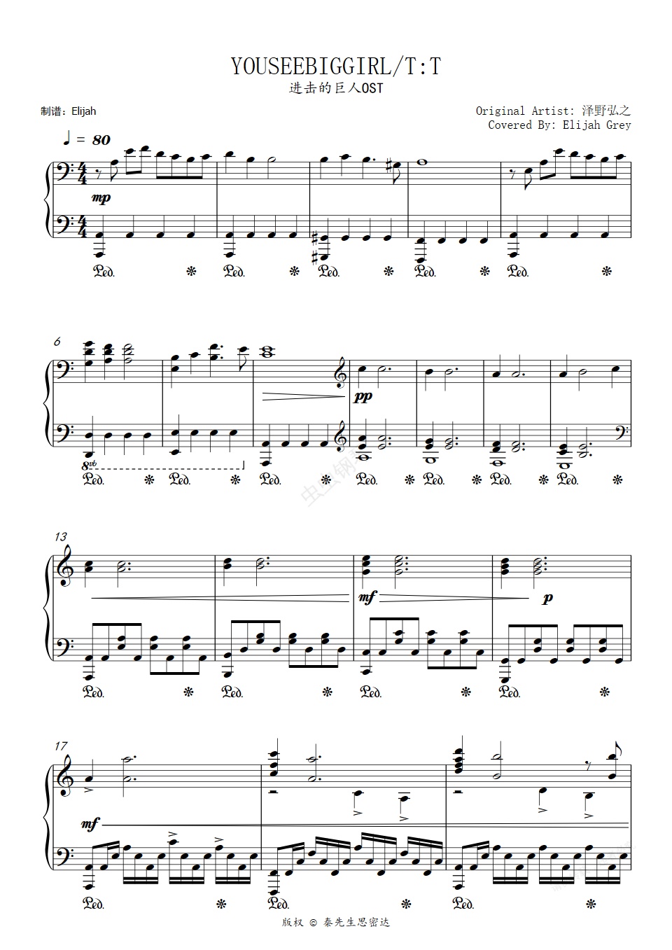 钢琴谱:YouSeeBIGGIRL/T:T-叛变神曲