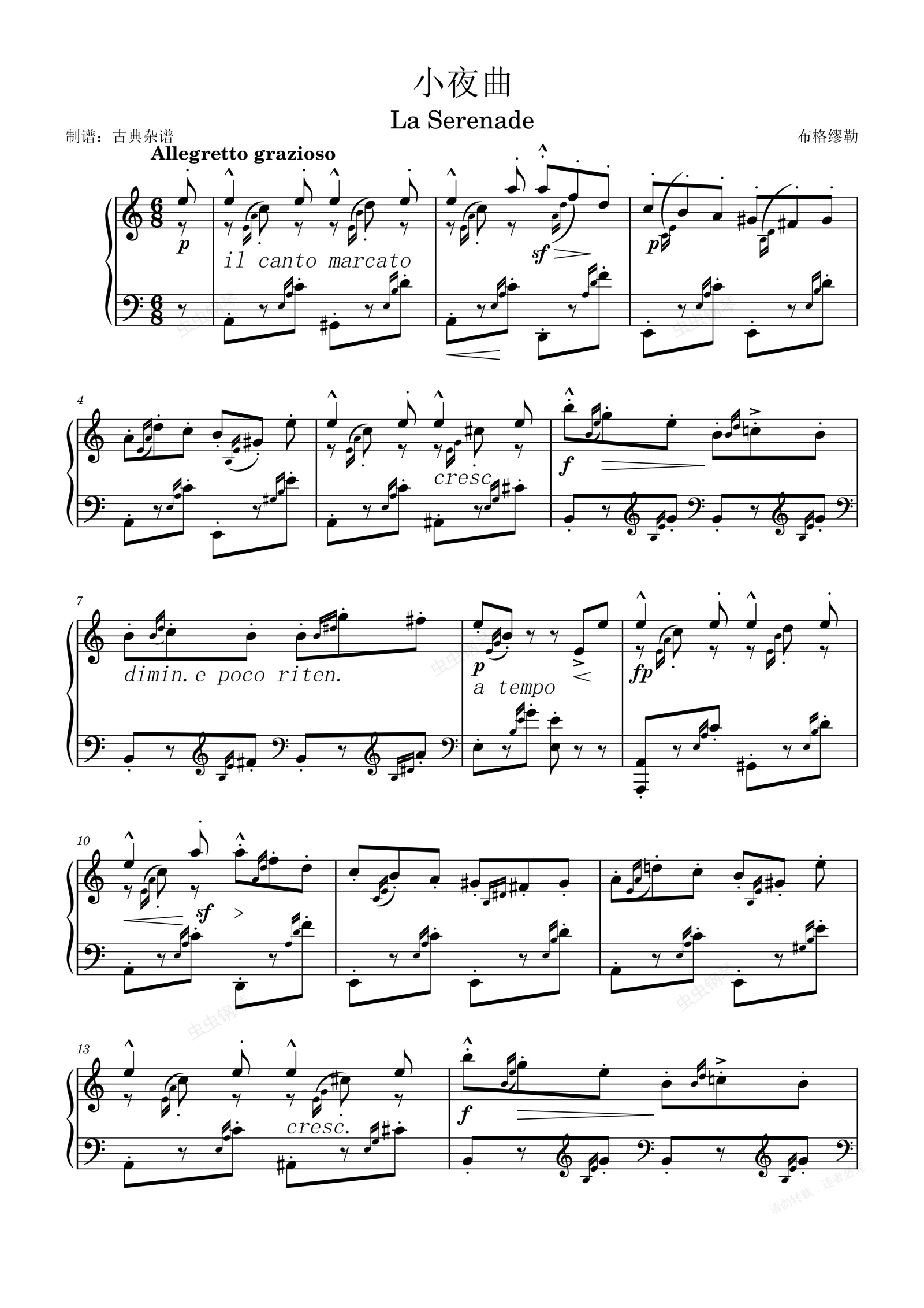 钢琴谱:小夜曲 布格缪勒18首钢琴练习曲Op.109