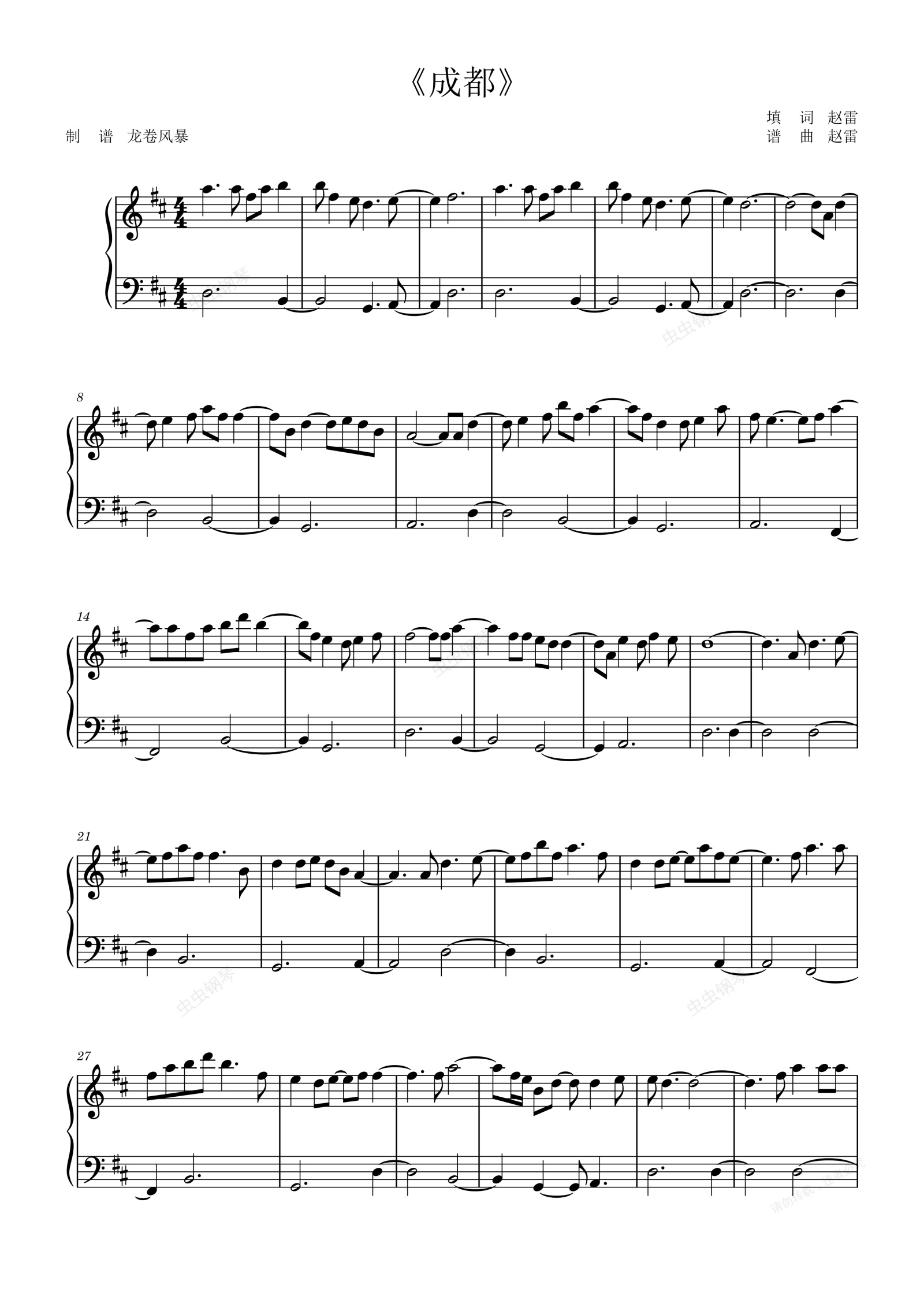 钢琴谱:《成都》赵雷(唯美演奏版)