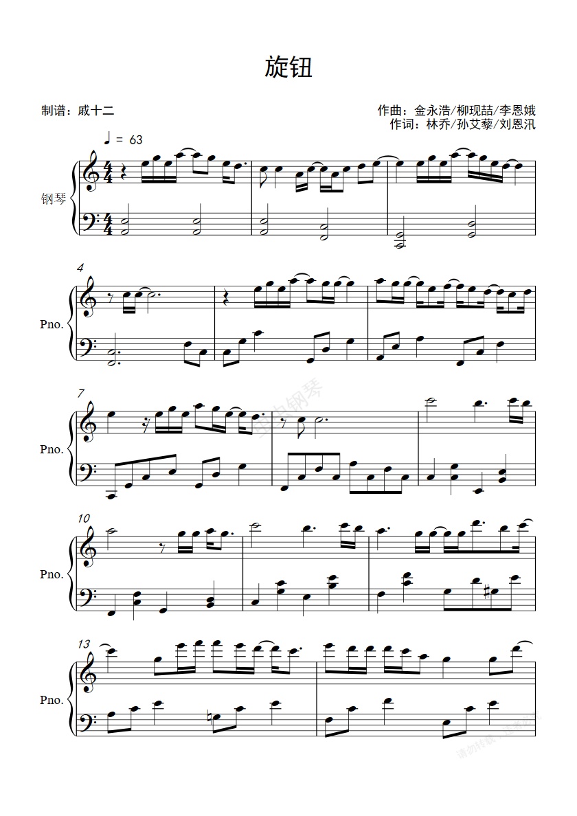钢琴谱:旋钮-C调简单版-世界微尘里片头曲
