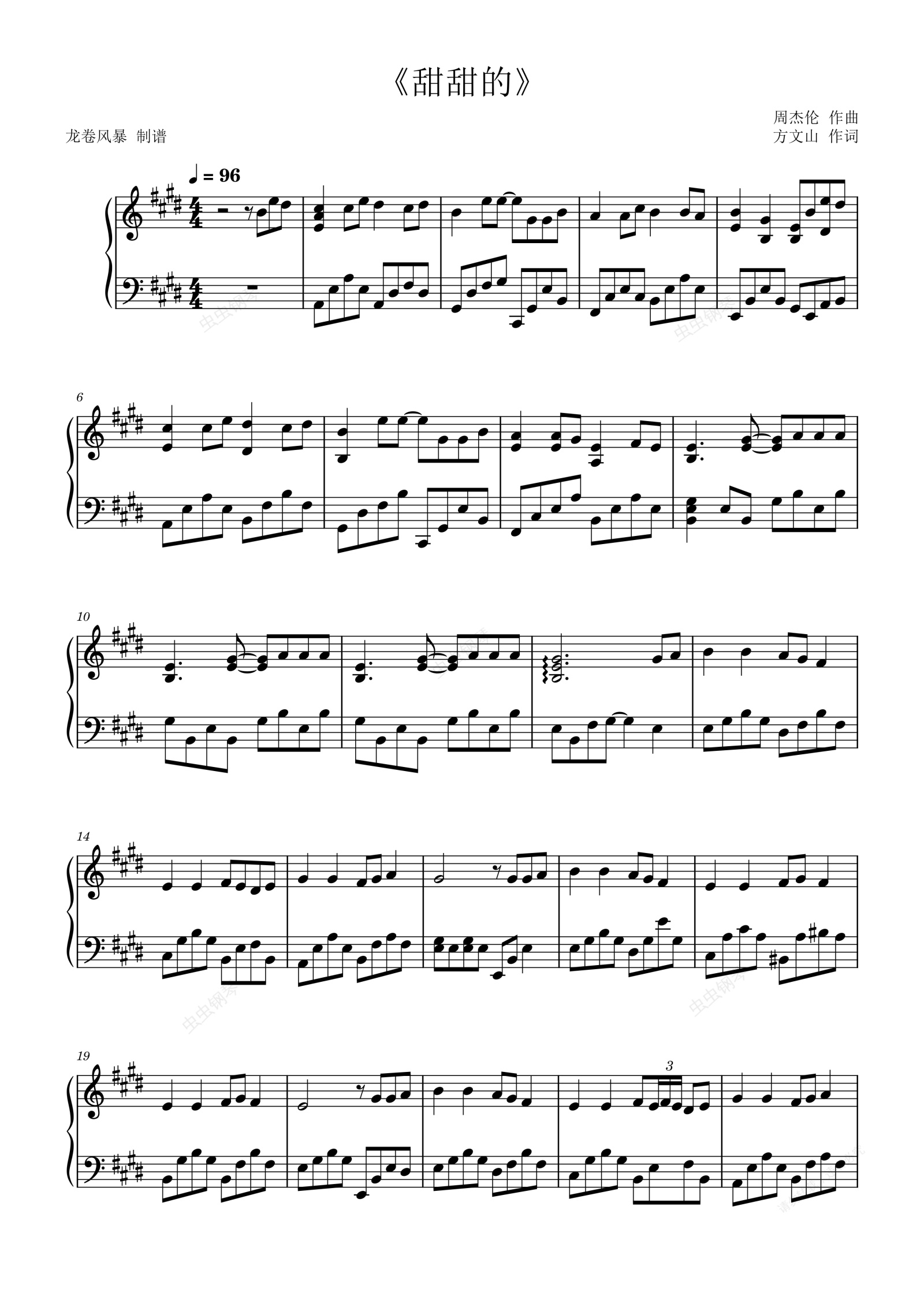 钢琴谱:《甜甜的》周杰伦(适合在婚礼上演奏)
