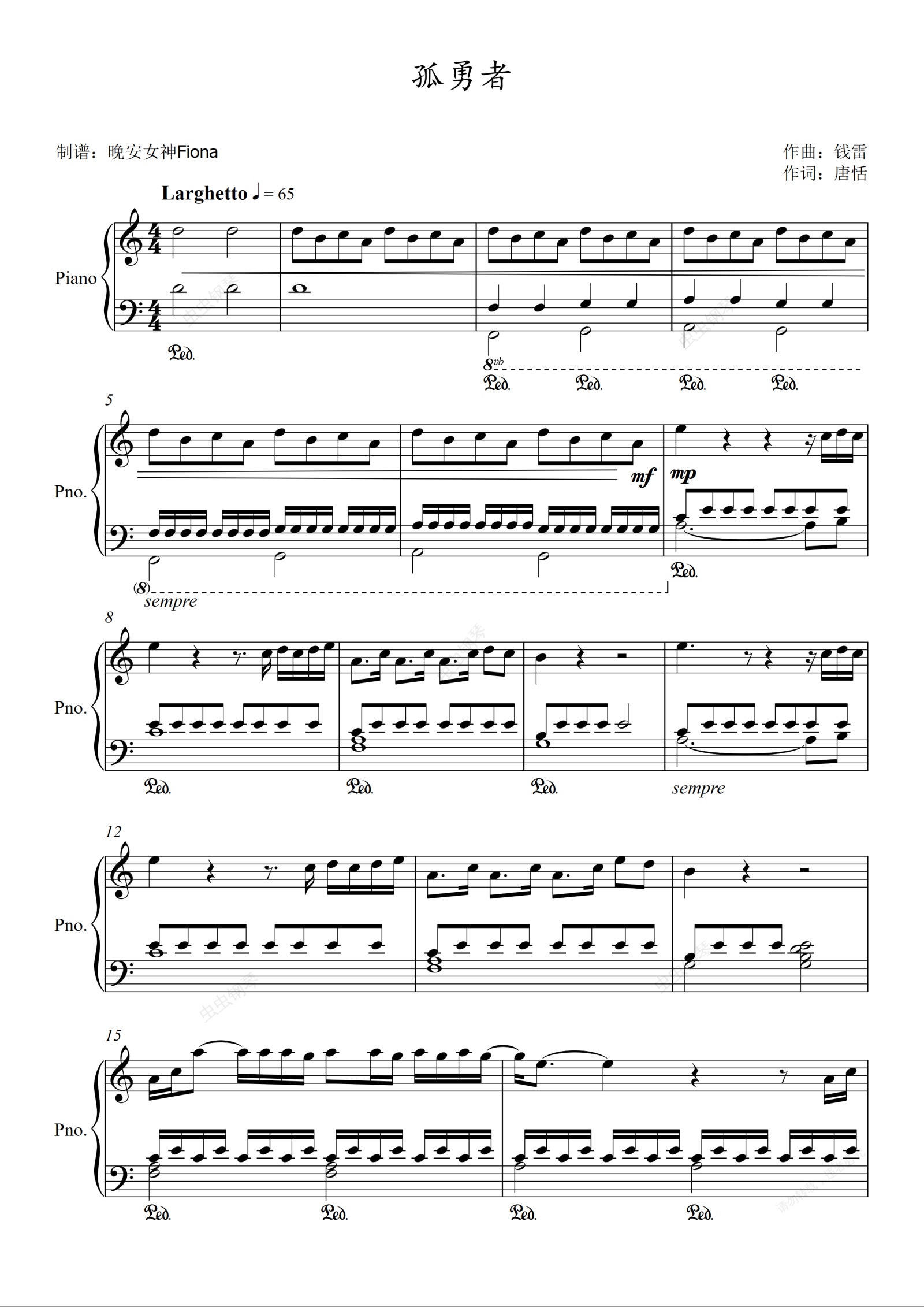 钢琴谱:燃系钢琴【孤勇者】完美演绎版
