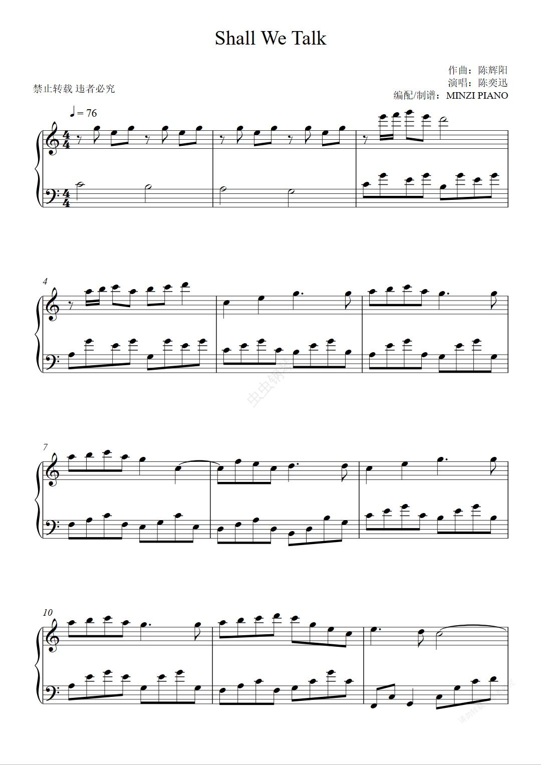 钢琴谱:陈奕迅 《Shall We Talk》好听易弹奏